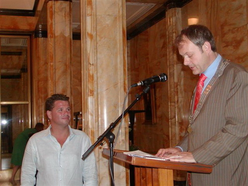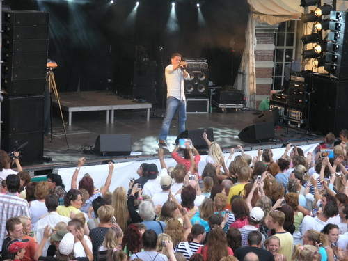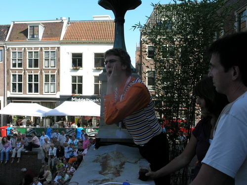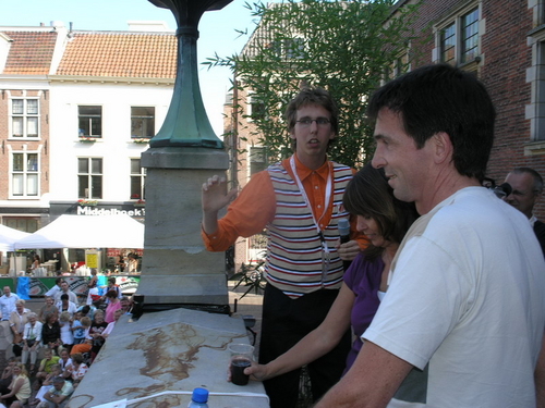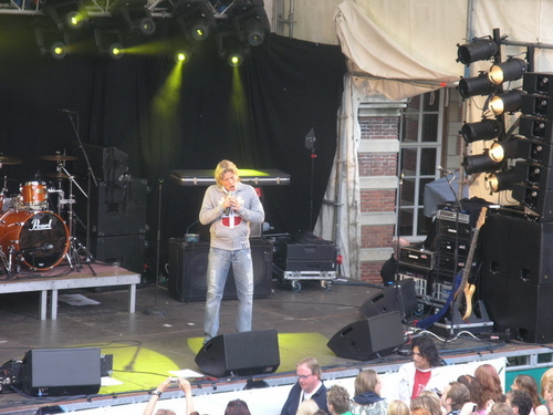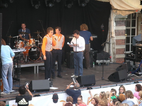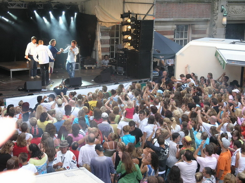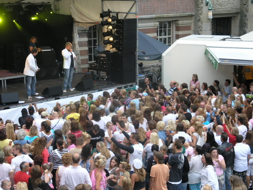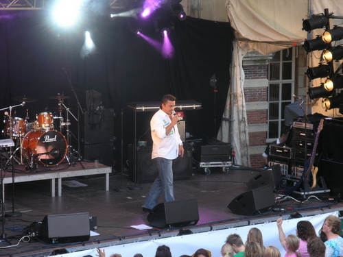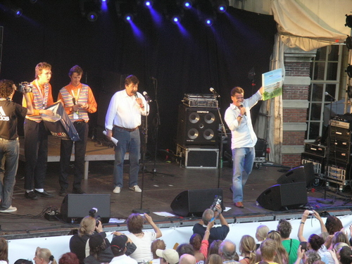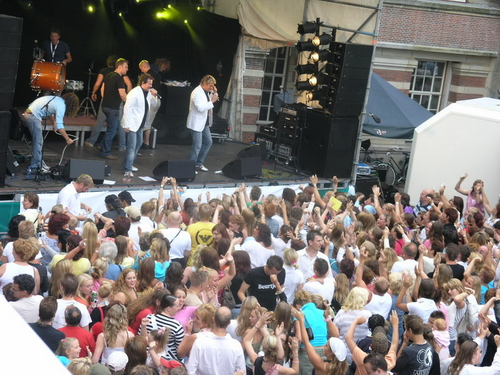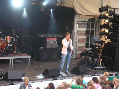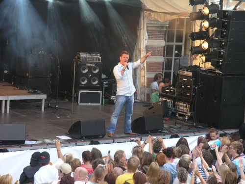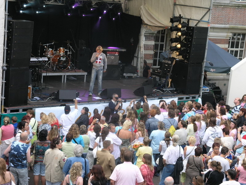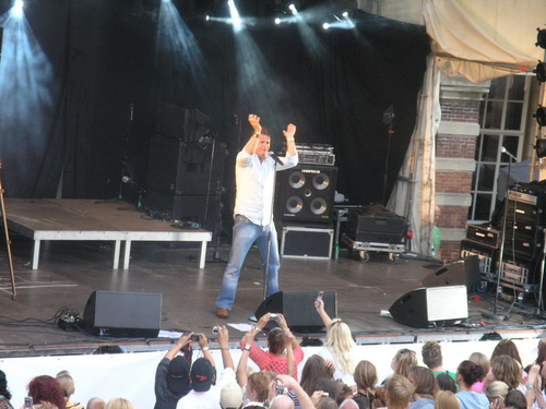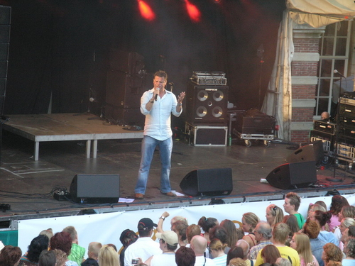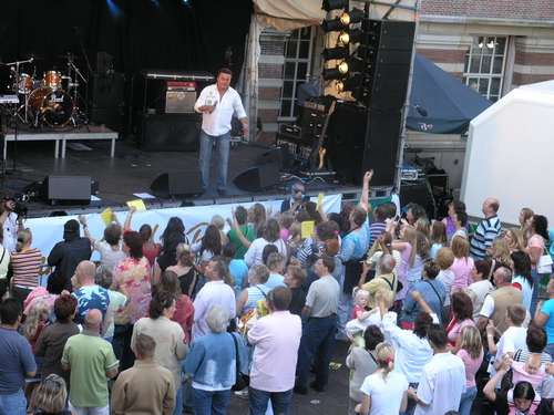 Rond 20.00 uur beklom Wolter Kroes het podium op het afgeladen Stadhuisplein. (Foto's: Chris de Waard en Emile van Aelst).