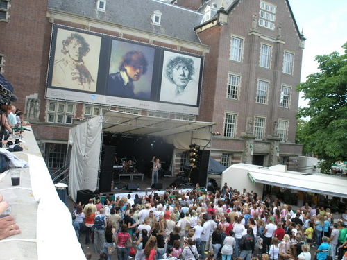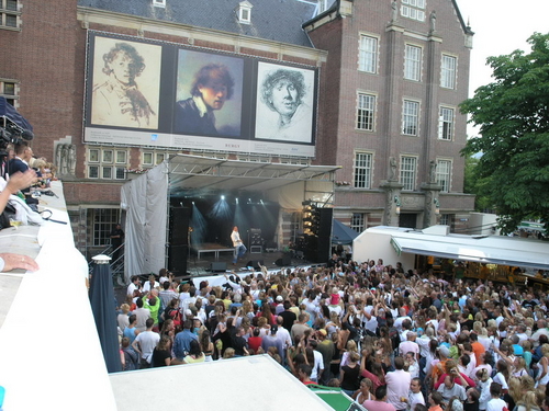 Ze waren elkaar een tijdje geleden toevallig tegen het lijf gelopen; de mensen van Radio Rembrandt en de Lakenfeesten-organisatie. Uit die toevallige ontmoeting ontstond een hele nieuwe invulling van het Energiq Avondspektakel. Zongen de afgelopen jaren de leden van het Eurokoor langs de Aalmarkt bij V&D hun kelen schor, dit keer stond de avond geheel in het teken van het Nederlandse lied. De internetzender Radio Rembrandt presenteerde zich tijdens het Avondspektakel met een keur van Nederlandse artiesten waaronder grote namen als Peter Koelewijn, Wolter Kroes en Nick & Simon. Die laatste drie kregen ook nog een prijs uitgereikt tijdens de officiele ontvangst, s’ middags in het Leidse stadhuis.