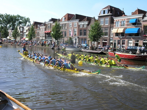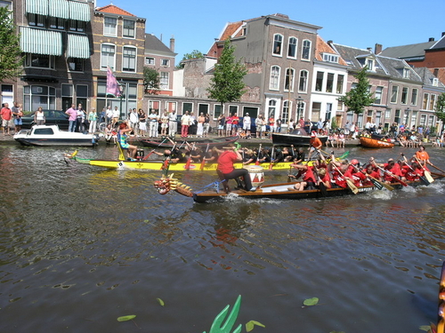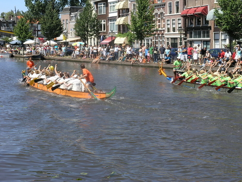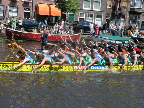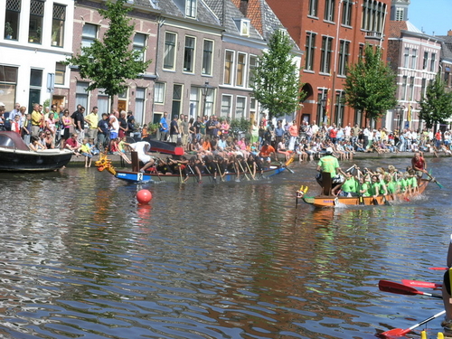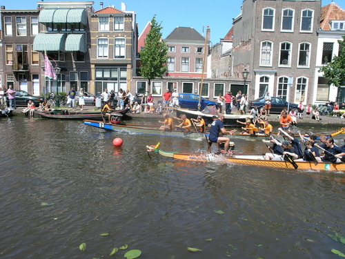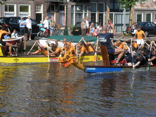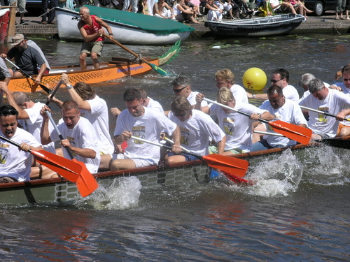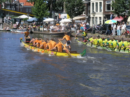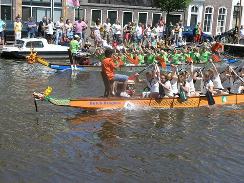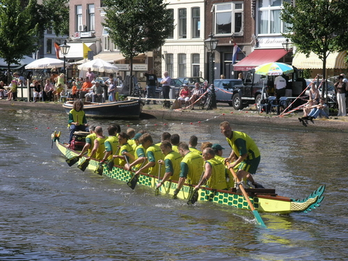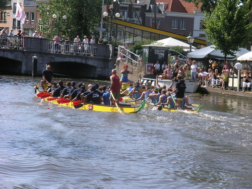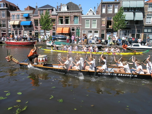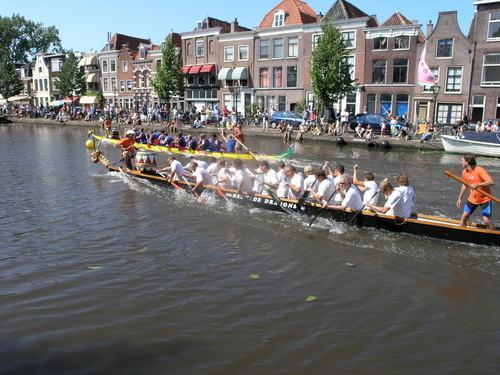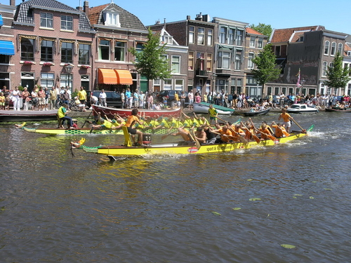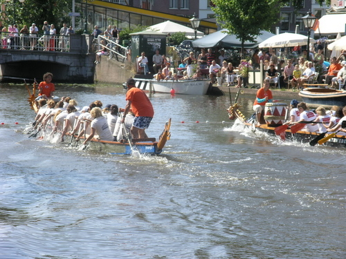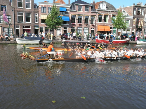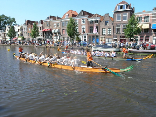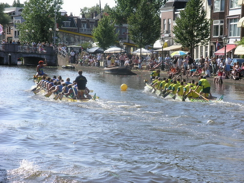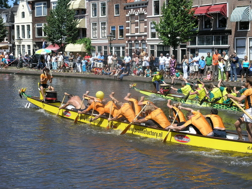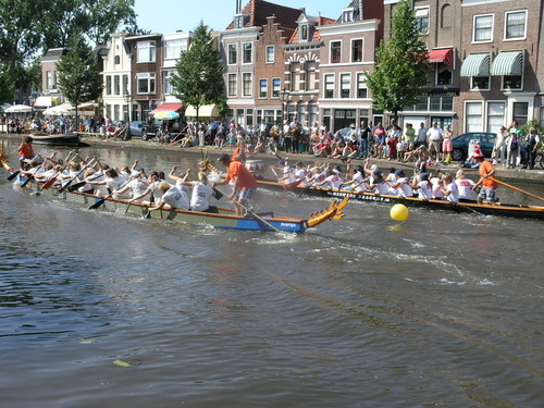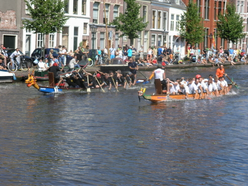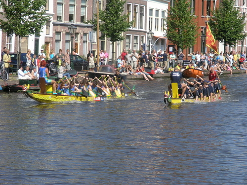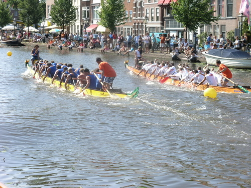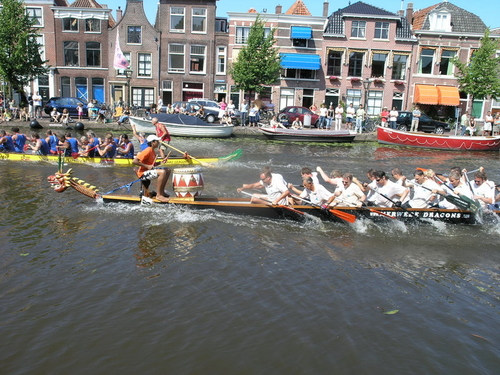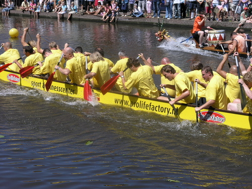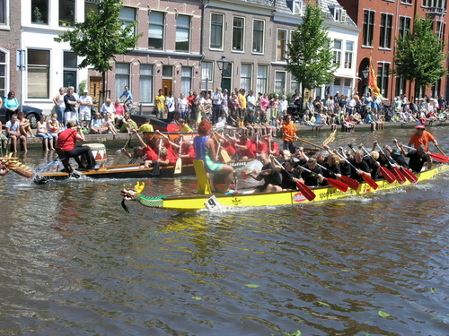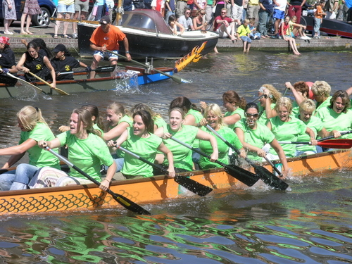 Afgelopen zaterdagmiddag stonden de Drakenbootraces op het Lakenfeesten-programma. De hele middag streden enkele tientallen teams om de eer en een beker in het water langs de Apothekersdijk. Aangemoedigd door vele honderden mensen die op het spektakel afgekomen waren, gingen de pijlsnelle boten door het water, opgezweept door de trommelaars en de teamgenoten aan de wal.