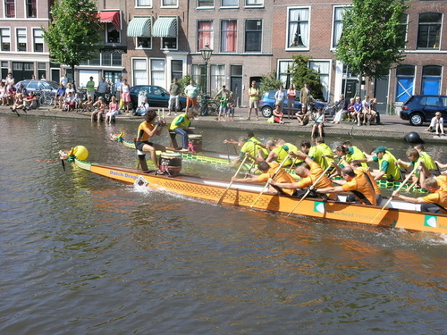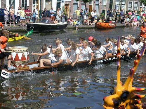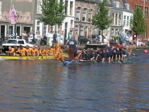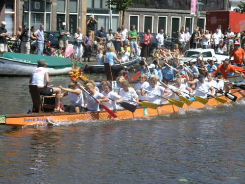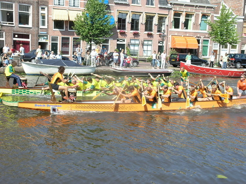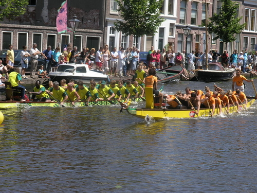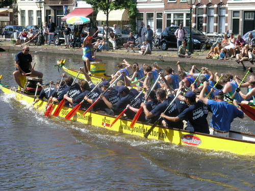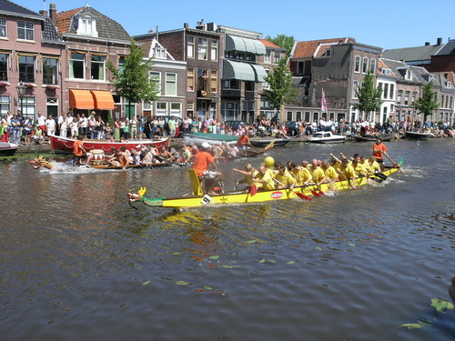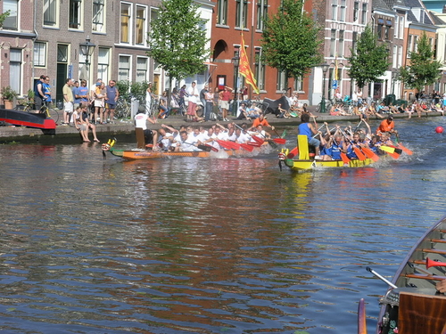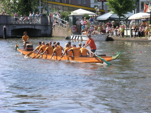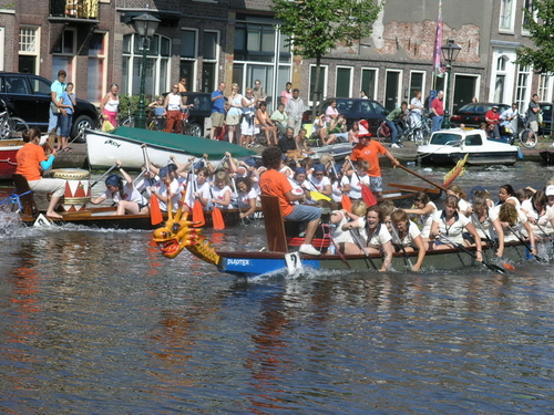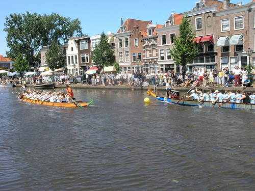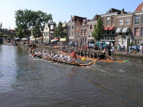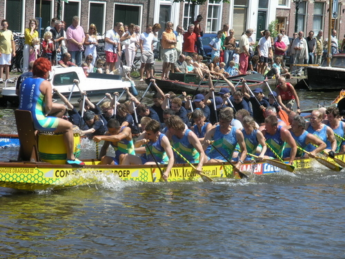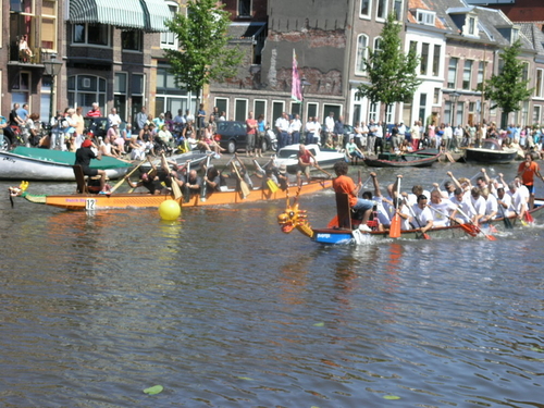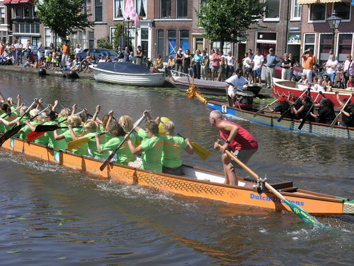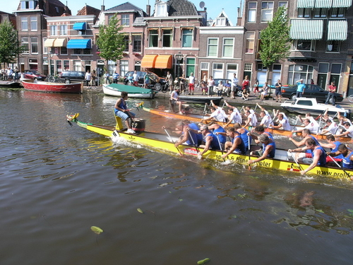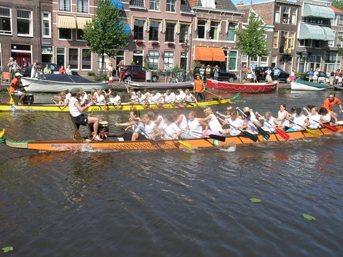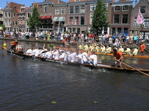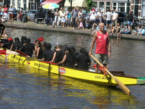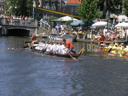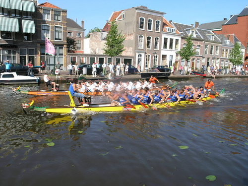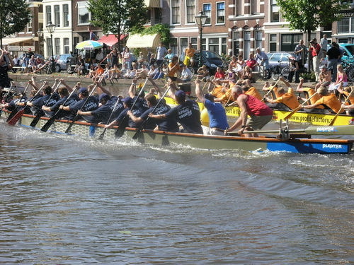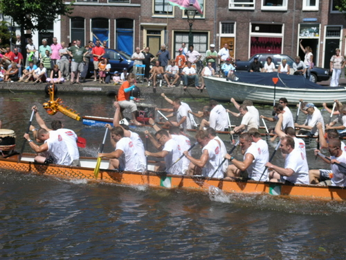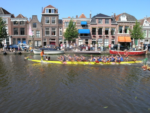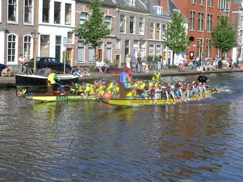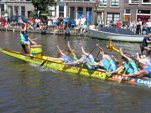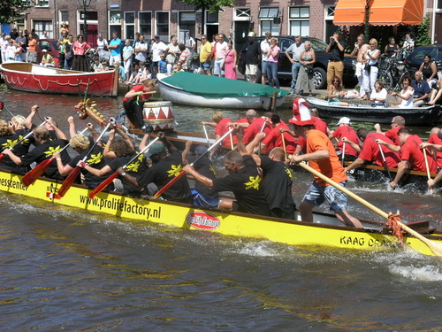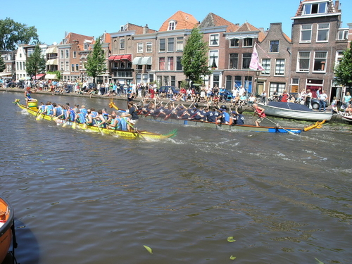 Afgelopen zaterdagmiddag stonden de Drakenbootraces op het Lakenfeesten-programma. De hele middag streden enkele tientallen teams om de eer en een beker in het water langs de Apothekersdijk. Aangemoedigd door vele honderden mensen die op het spektakel afgekomen waren, gingen de pijlsnelle boten door het water, opgezweept door de trommelaars en de teamgenoten aan de wal.