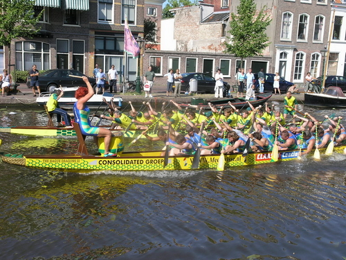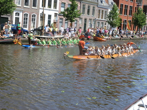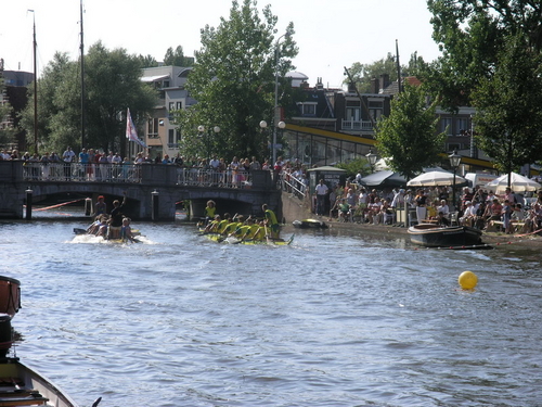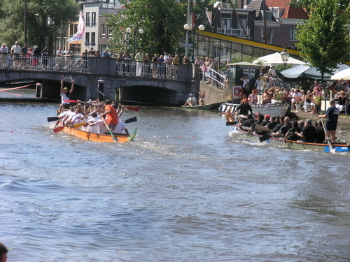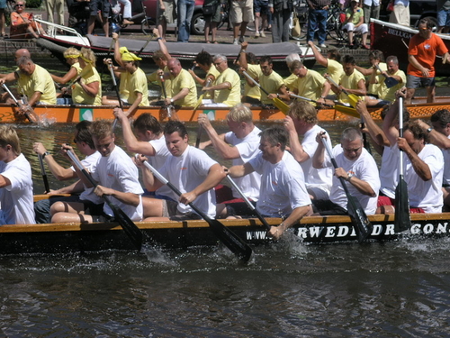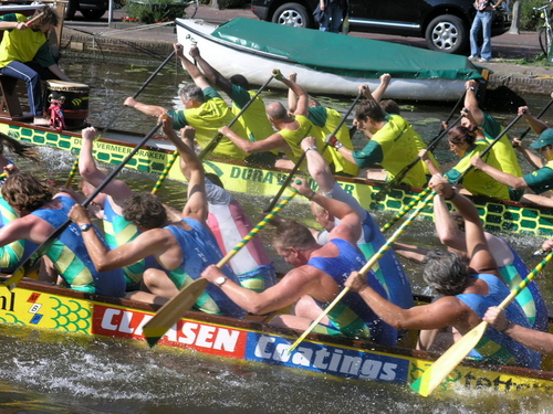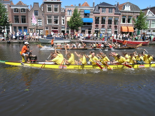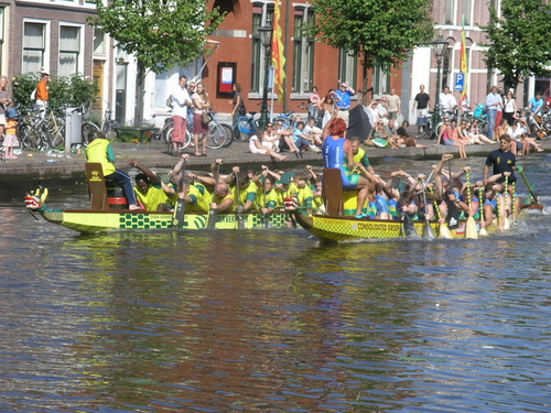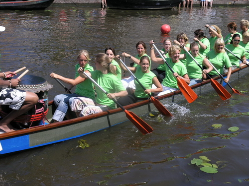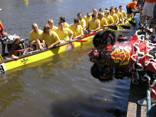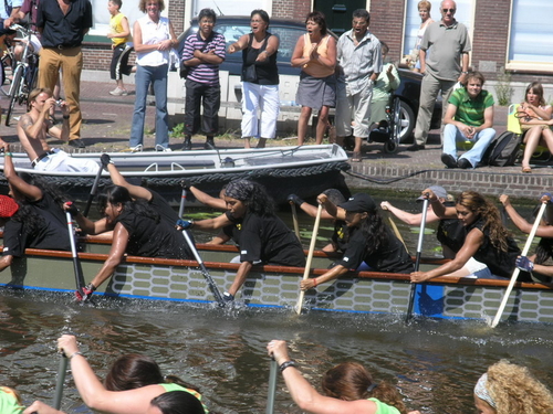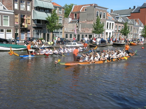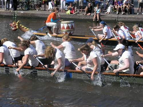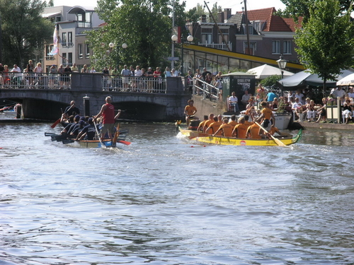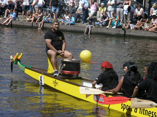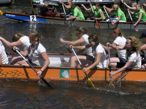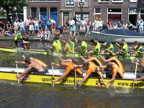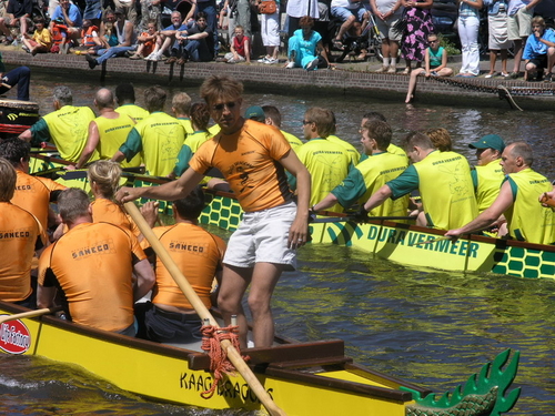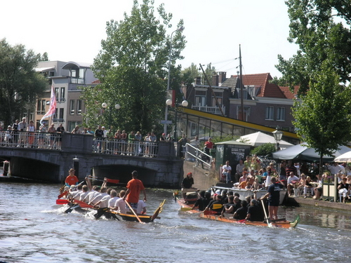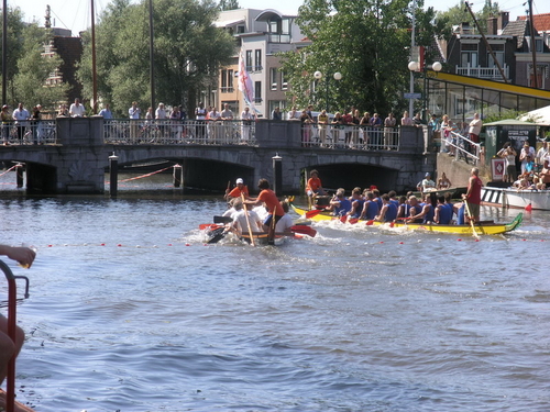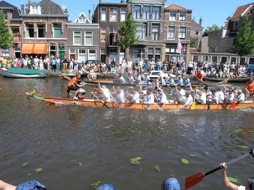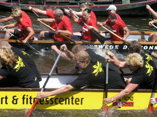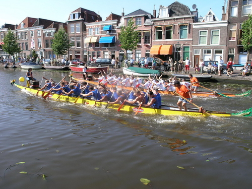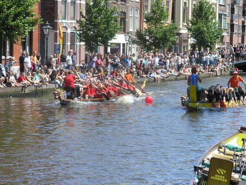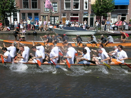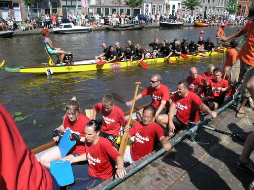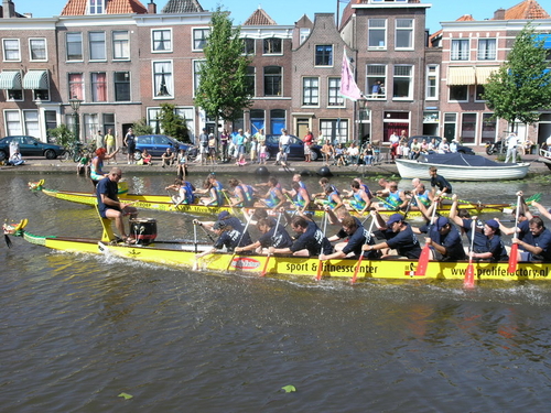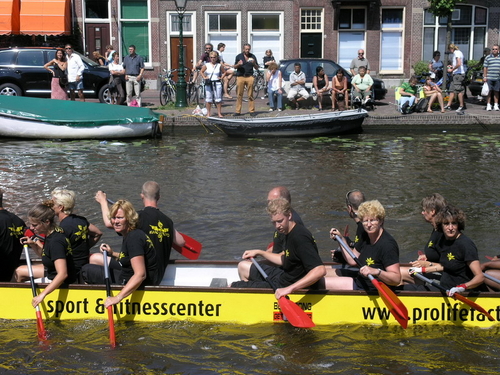 Afgelopen zaterdagmiddag stonden de Drakenbootraces op het Lakenfeesten-programma. De hele middag streden enkele tientallen teams om de eer en een beker in het water langs de Apothekersdijk. Aangemoedigd door vele honderden mensen die op het spektakel afgekomen waren, gingen de pijlsnelle boten door het water, opgezweept door de trommelaars en de teamgenoten aan de wal.