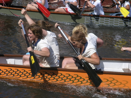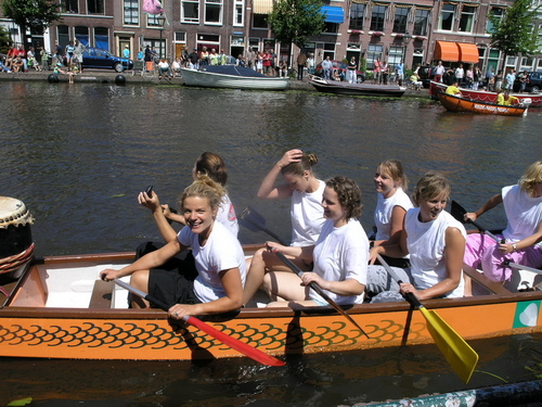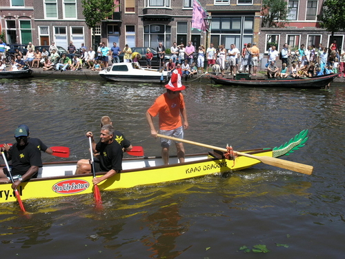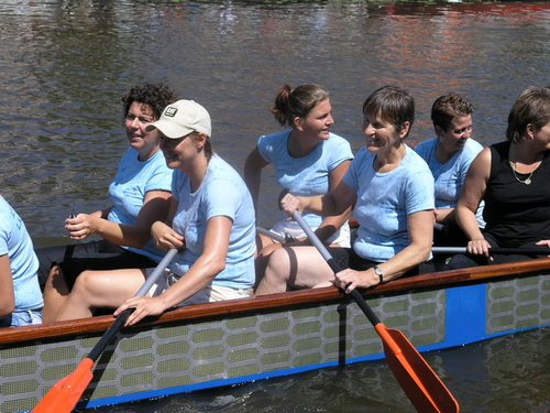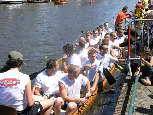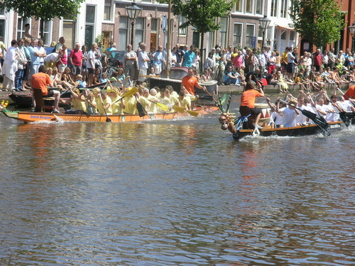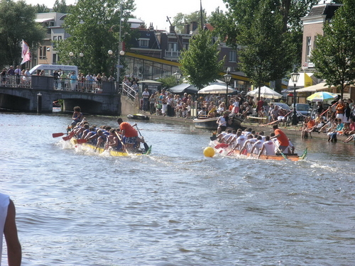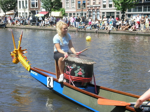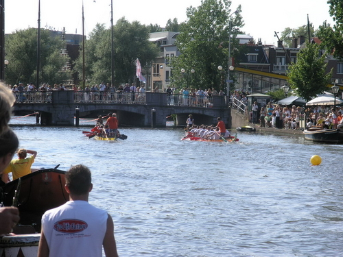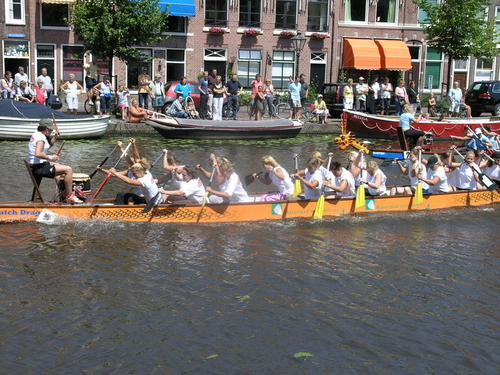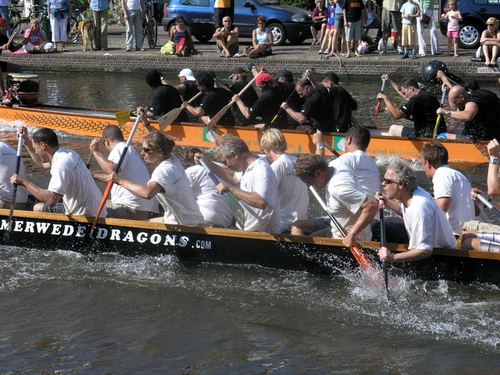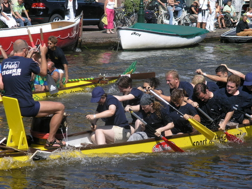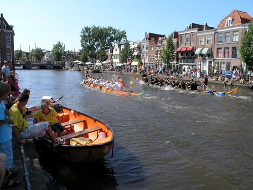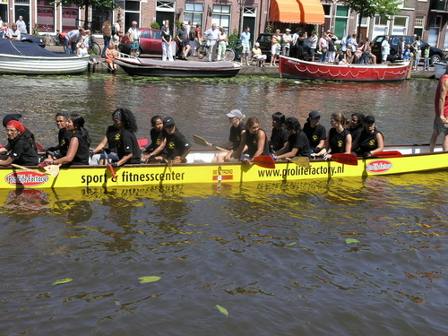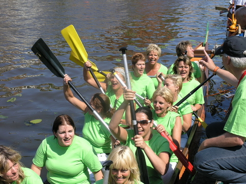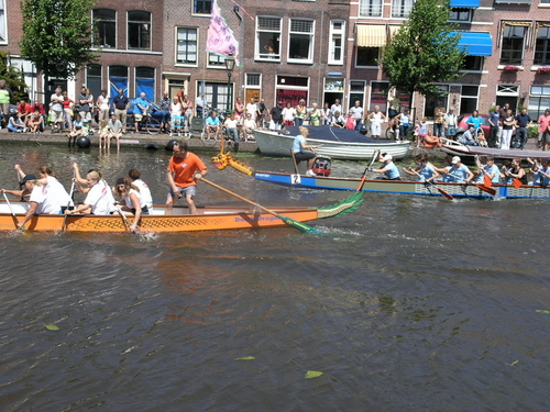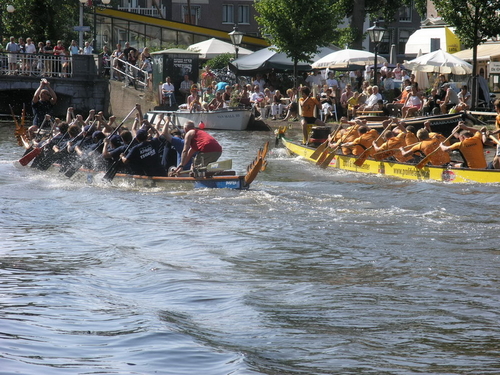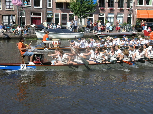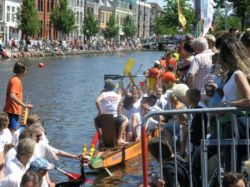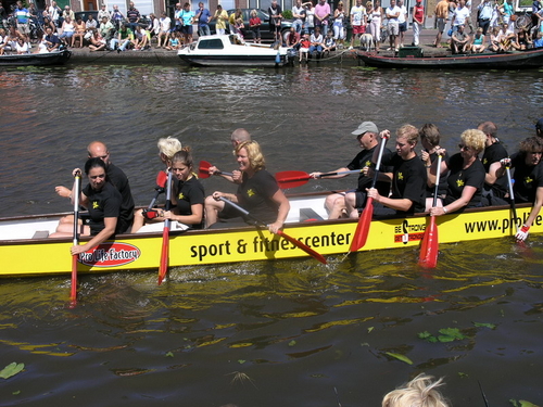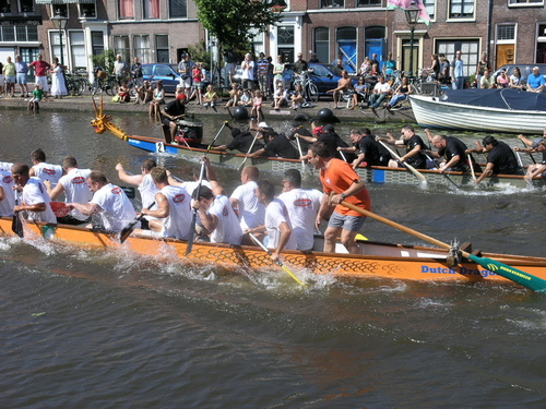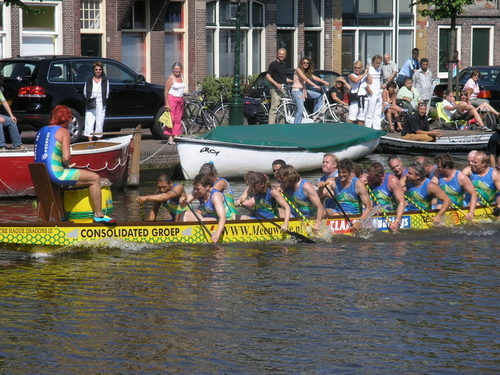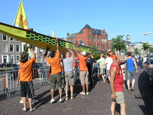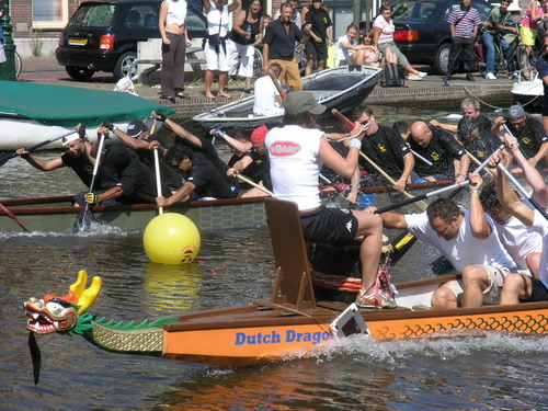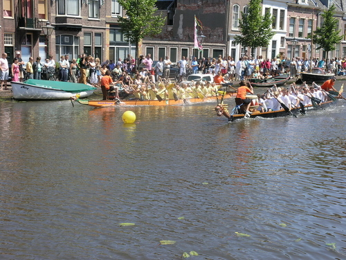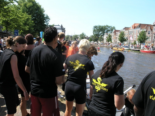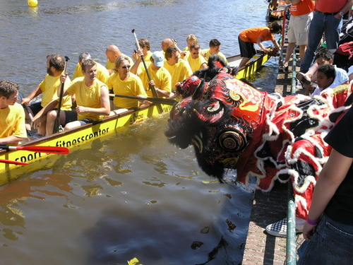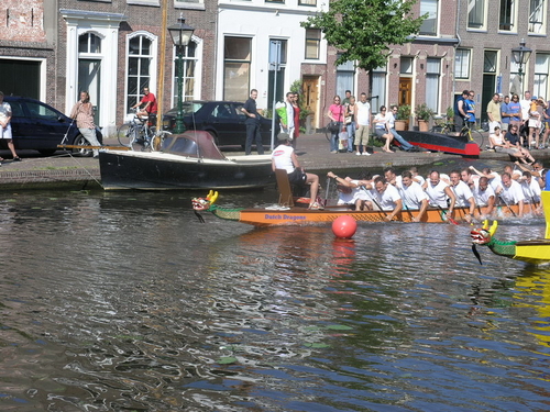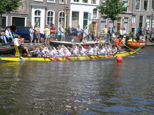 Afgelopen zaterdagmiddag stonden de Drakenbootraces op het Lakenfeesten-programma. De hele middag streden enkele tientallen teams om de eer en een beker in het water langs de Apothekersdijk. Aangemoedigd door vele honderden mensen die op het spektakel afgekomen waren, gingen de pijlsnelle boten door het water, opgezweept door de trommelaars en de teamgenoten aan de wal.