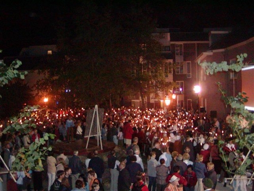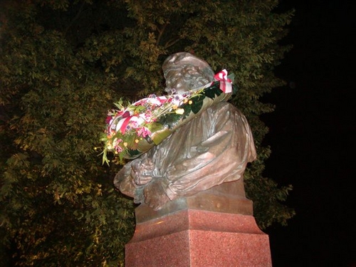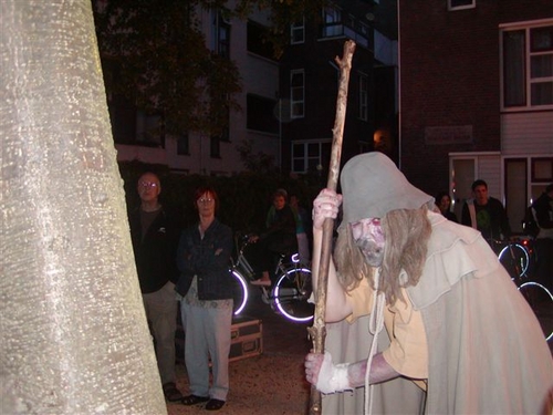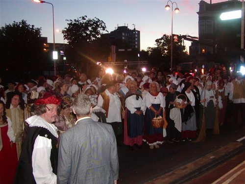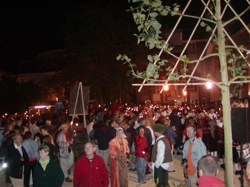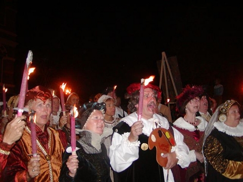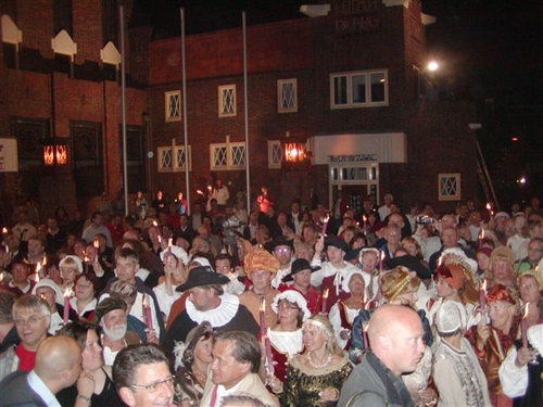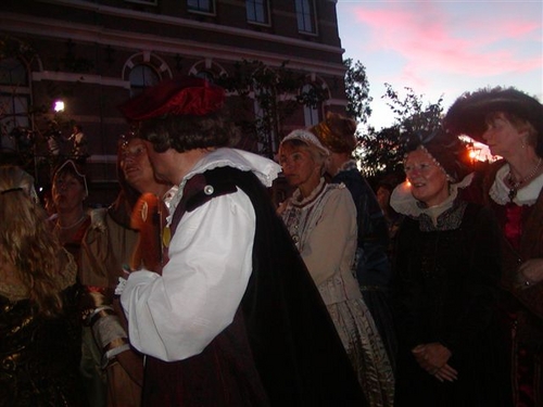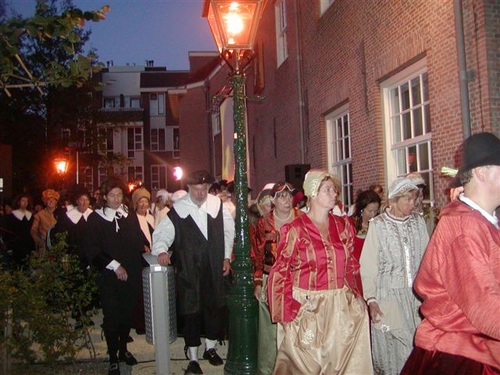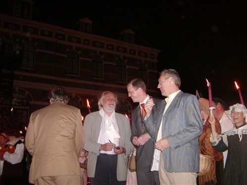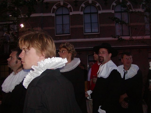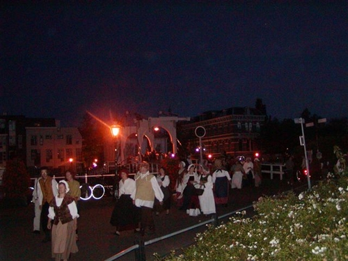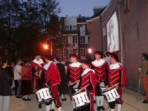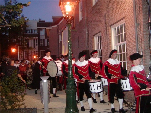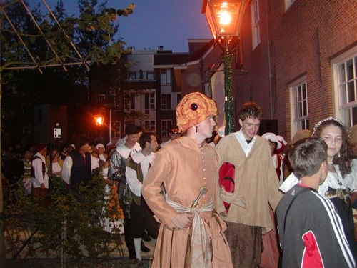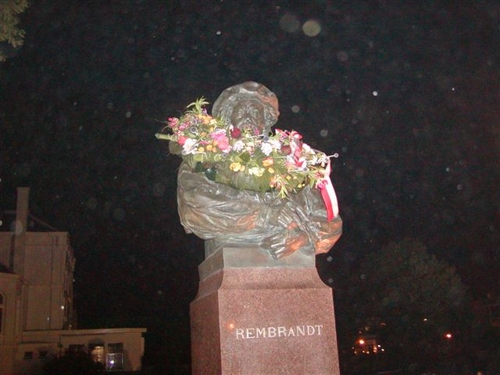 Honderden Leidenaren hebben gisteravond de verjaardag van Rembrandt gevierd bij het standbeeld aan de Witte Singel. Al jaren organiseren Tjeerd Scheffer en Ben Walenkamp in de nacht van 14 op 15 juli een klein feestje rond het standbeeld waar vervolgens een krans omheen wordt gehangen. De afgelopen jaren werd het steeds iets drukker op het verjaardagspartijtje, maar dit jaar wisten feestende Leidenaren het partijtje van de beroemde Leidse schilder massaal te vinden.
