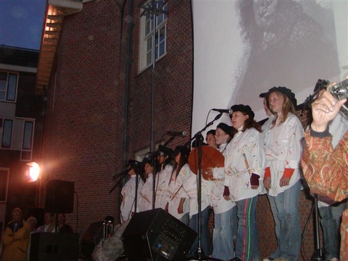 Het verjaardagsfeestje werd muzikaal opgeleukt door De Leidse Sleuteltjes en kamerkoor Het Zingend Hart.