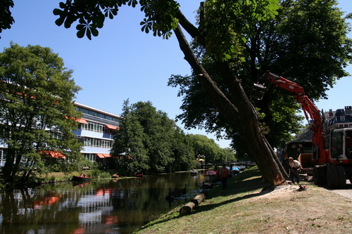 Een aantal kastanjebomen langs de Witte Singel is ziek en levert daardoor een gevaar op. De gemeente is daarom begonnen met het weghalen van de stervende bomen. Maandag ging de zaag in het eerste exemplaar. Wanneer de rest van de zieke bomen wordt omgezaagd is nog niet precies bekend. Dat gebeurt zodra de gemeente er geld voor heeft vrijgemaakt.