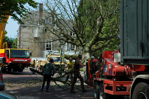 Eerder deze week brak er een grote tak van een 50 jaar oude boom in het Van der Werffpark. Nader onderzoek wees uit dat de boom niet meer te redden was en gekapt moest worden. Tijdens het inspectierondje dat de gemeente vervolgens maakte, werden nog twee bomen aangetroffen die een gevaar opleverden. Ook deze moesten eraan geloven.