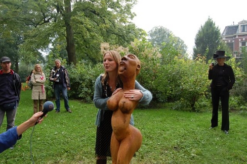 Morgenochtend om 10.00 uur zal wethouder John Steegh in het Plantsoen het kunstwerk ‘de Venus van Leiden’ officieel onthullen. Het massief eikenhouten standbeeld werd twee jaar geleden door het toenmalige Kunst Uitschot Team (K.U.T) illegaal geplaatst en werd door de gemeente verwijderd. De anonieme kunstenaars werd destijds gevraagd zichzelf kenbaar te maken zodat er naar een tijdelijke oplossing kon worden gezocht. Er werd een vergunning aangevraagd zodat ‘de Venus van Leiden’ kon terugkeren in het Plantsoen. Het K.U.T. wil tegendraadse kunst presenteren en heeft gemengde gevoelens bij de herplaatsing morgen.