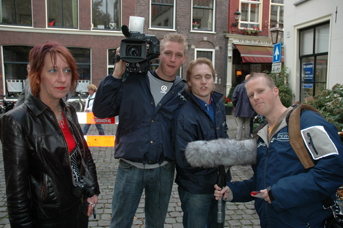 De vorige, Piet van Sterkenburg, en de huidige voorzitter, Els van Eijck van Heslinga, van de 3 October Vereeniging prikten ook een vorkje mee op het Pieterskerkplein. (Foto's: Chris de Waard).