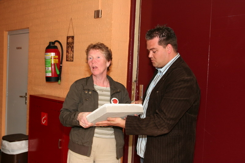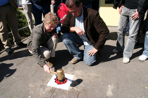 Tineke van Rossem, manager Noord en Midden van de LWO, plaatste de eerste tegel samen met Floris Schoonderwoerd van de Stichting tegen Zinloos Geweld.