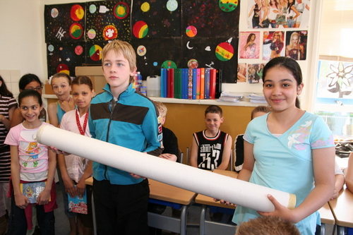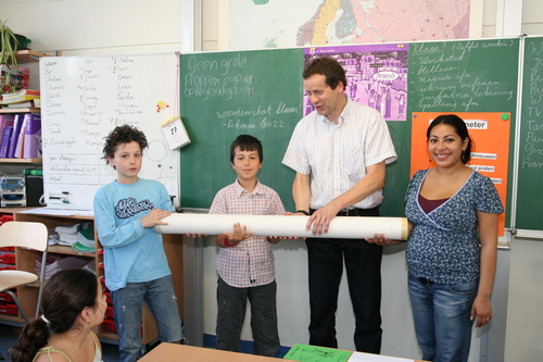De Leidse Pacellischool en de Rosa Lanzasschool in Juigalpa, Nicaragua hebben al jaren een band met elkaar. Leiden en Juigalpa zijn immers zustersteden. Om het contact tussen beide scholen levendiger te maken, gaan de leerlingen in het vervolg informatie met elkaar uitwisselen. Dit doen zij door middel van een heen-en-weer-koker. Dit is een dikke kartonnen koker, die de leerlingen vullen met allerlei materiaal, waarna zij hem naar de partnerschool sturen. Vandaag is de koker in gebruikgenomen. BovenbouwLeerlingen van de Pacellischool overhandigden de kartonnen postcapsule aan twee vrijwilligers van de stichting Vriendschapsband Leiden-Juigalpa. De koker is gevuld met informatie die de vraag: “Hoe gaat het er aan toe op onze school?” moet beantwoorden.