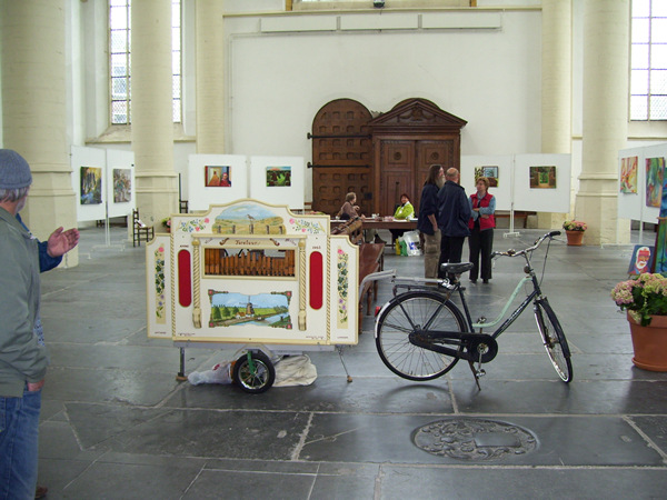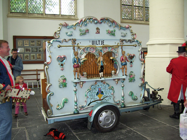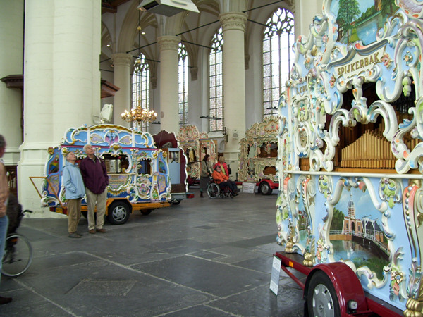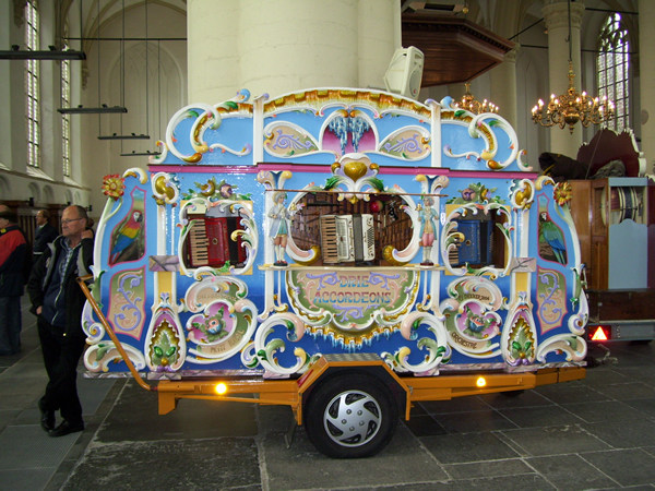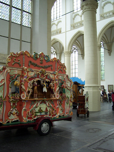 De Leidse Draaiorgeldag wordt vandaag alweer voor de negende keer gehouden. In de Hooglandse Kerk staan circa 25 Leidse draaiorgels opgesteld, van groot tot klein, van uitbundig gedecoreerd tot simpele houten exemplaren. Ondanks het stormachtige weer is de belangstelling groot. Om de beurt laten de orgels een melodie horen. Aan het eind van de dag zal het grote orgel van de Hooglandse Kerk met de draaiorgels meespelen.