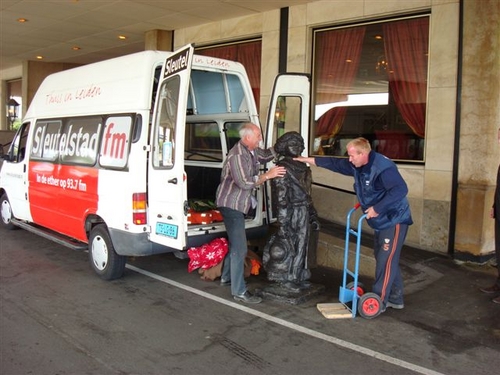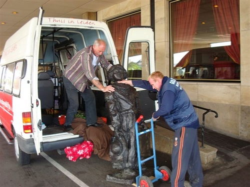 Stichting de Jonge Rembrandt heeft het beeld dat de Leidse kunstenaar Jeroen Spijker vorig jaar maakte gisteren overgebracht naar Huis ter Duin in Noordwijk. Het standbeeld was een cadeau van de stichting aan de stad, maar de gemeente wil het niet hebben. Verschillende plekken in de stad, waaronder ’t Gerecht, werden door de gemeentelijke Adviescommissie Ruimtelijke Kwaliteit (ARK) van de hand gewezen. Vorige maand bleek na ‘goed overleg’ tussen cultuurwethouder Jonas (SP) en Chris Verplancke, voorzitter van de Stichting de Jonge Rembrandt, dat het beeld definitief geen plek in de Sleutelstad krijgt.