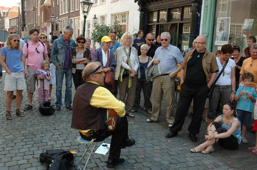 De Gouden Pet inclusief een geldprijs van 1000 euro is vanmiddag naar L’Chaim uit Delft gegaan. L’Chaim dat ‘op het leven’ betekent is een negenmansband die met zang en muziekinstrumenten Klezmer, Balkan- en Russische folkliedjes ten gehore brengt. De tweede plaats is voor De Hoekse Troubadour uit Hoek van Holland. Hij ontving naast bloemen en de reiskostenvergoeding 500 euro. Hij vertolkt zelfgeschreven autobiografische Nederlandstalige hilarische levensliederen. De Hoekse troubadour met gitaar weet de lachers op zijn hand te krijgen met zijn lied over meisjes met een hond en een liedje over sporten en daarna lekker zuipen in de sportcantine. Hij deed ook al eerder mee aan het Leids Festival voor het Levenslied maar dat eindigde voor hem toen niet in een succes. Hier bij het Straatmuzikantenconcours was hij overduidelijk beter op zijn plaats.