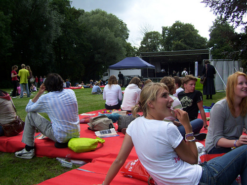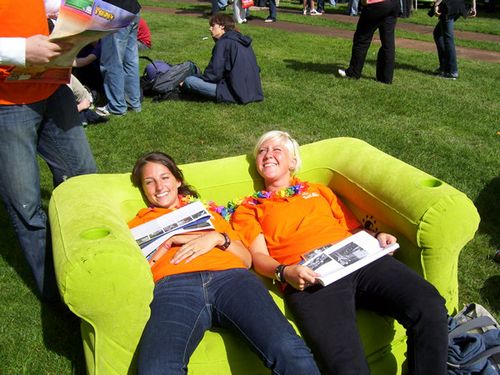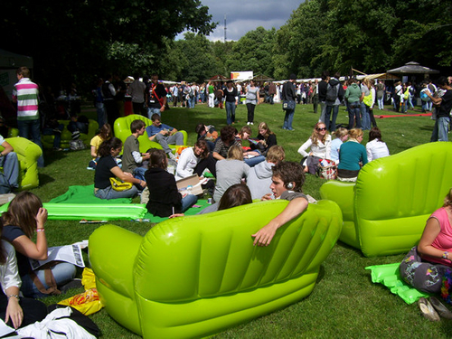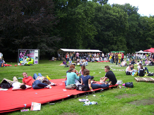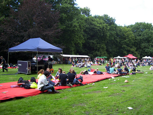 Vandaag wordt in de leidse Hout ‘Het Leids Eerstejaars Festival’ (LEF) gehouden. Het programma begon om 13.30 uur met muziek op het hoofdpodium en met de start van een uitgebreide informatiemarkt. Het festival duurt nog de hele dag en gaat door tot vannacht 01.00 uur. De sfeer zit er goed in en heeft wel iets weg van een Popfestival. De rode lopers zijn voor de kersverse studenten uitgelegd. Naast een feestelijk effect vooral ook erg praktisch, want de drassige grond van de leidse Hout is al in een soort moeras veranderd. De zit- en ligzakken zijn druk bezet en ook op de knalgroene opblaasbanken wordt enthousiast ‘gelounged’.
