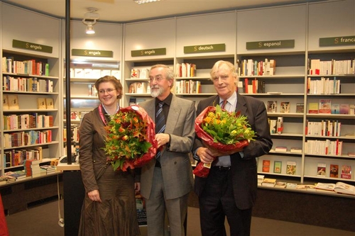 Oud-burgemeester Cees Goekoop nam afgelopen avond het eerste exemplaar in ontvangst van het Leidse woordenboek dat werd geschreven door Hans Heestermans. (Foto's: Emile van Aelst).