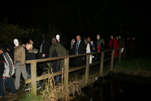 De kinderen gingen verkleed langs de huizen om snoep op te halen. Aan het einde van de tocht werden ze getracteerd op heksensoep en drakenbloed.