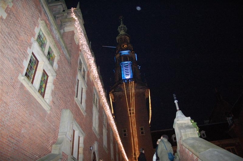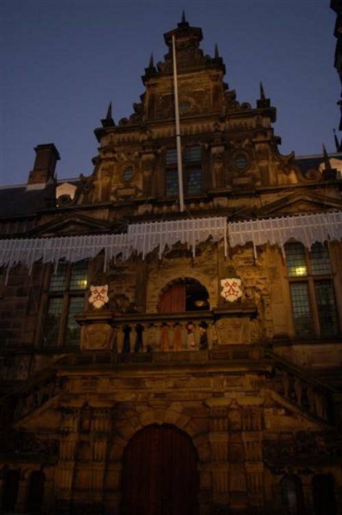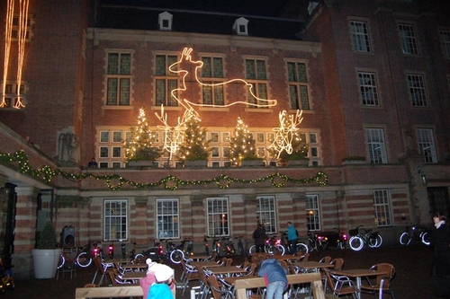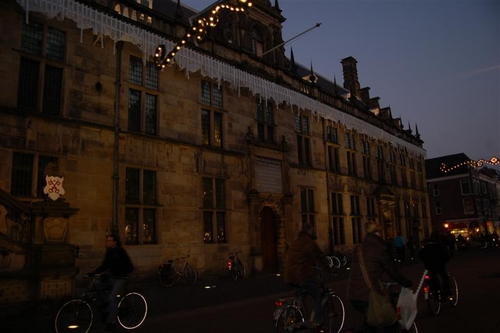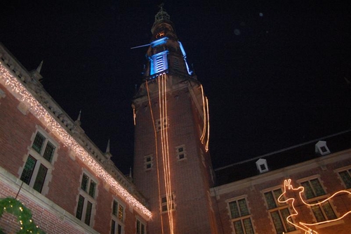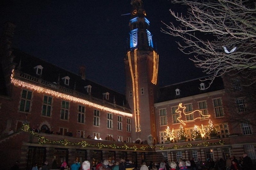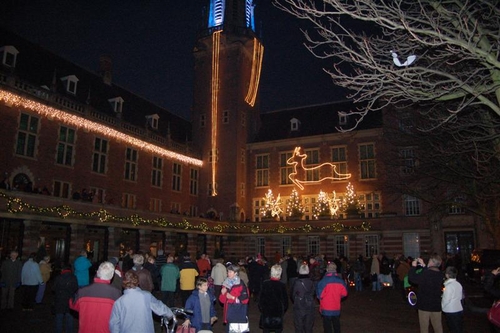 Gistermiddag heeft de brandweer om 17.00 uur het project ‘Lichtjes Leids‘ geopend. Mensen uit verschillende wijken zijn drie maanden onder leiding van beeldend kunstenaar Resi van der Ploeg bezig geweest met het maken van diverse versieringen. Doordat het aanbrengen van kerstverlichting in en rondom het huis een trend van de laatste jaren is, wist ze een grote groep Leidenaren te mobiliseren. Samen hebben ze het stadhuis omgetoverd in een kersthuis.