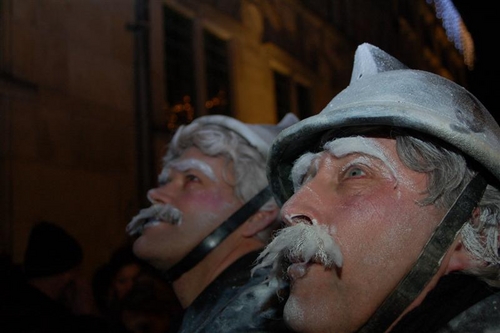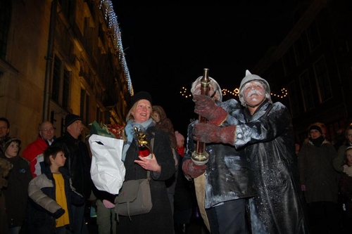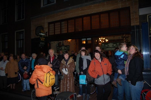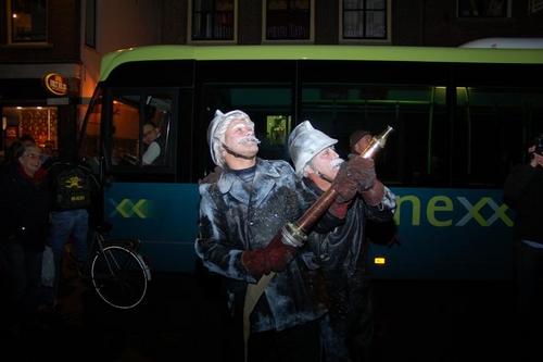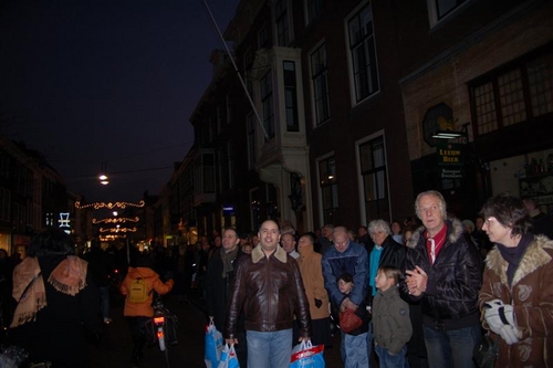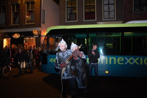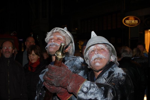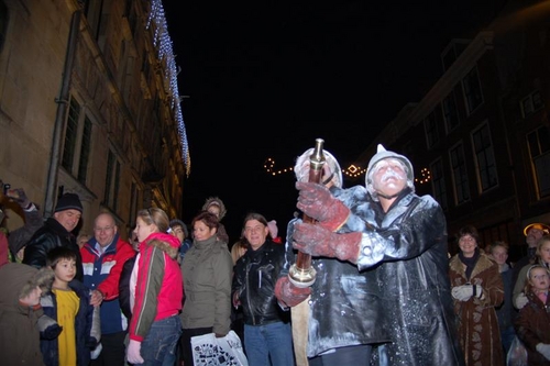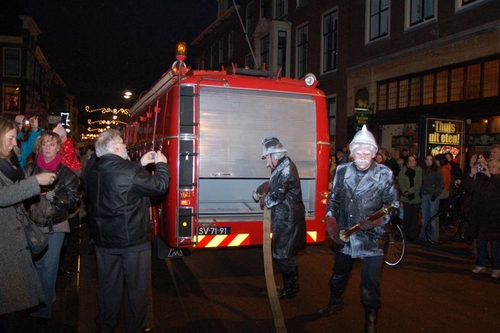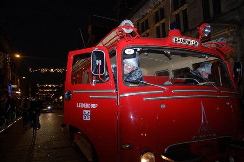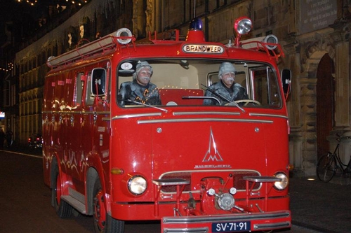 Brandweermannen in historische kledij en een antieke brandweerwagen verrichten gistermiddag de opening van 'Lichtjes Leids'. (Foto's: Emile van Aelst / www.leidseglibber.punt.nl).
