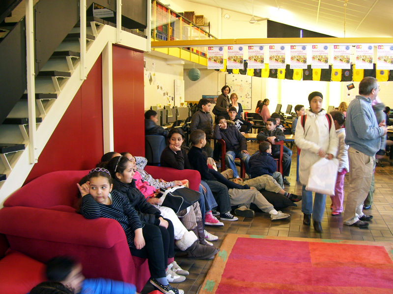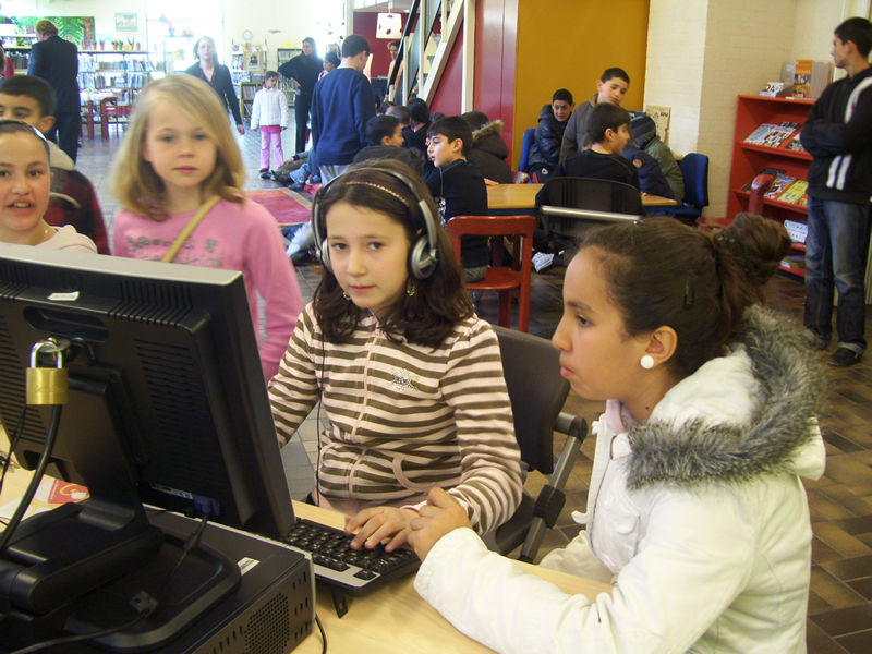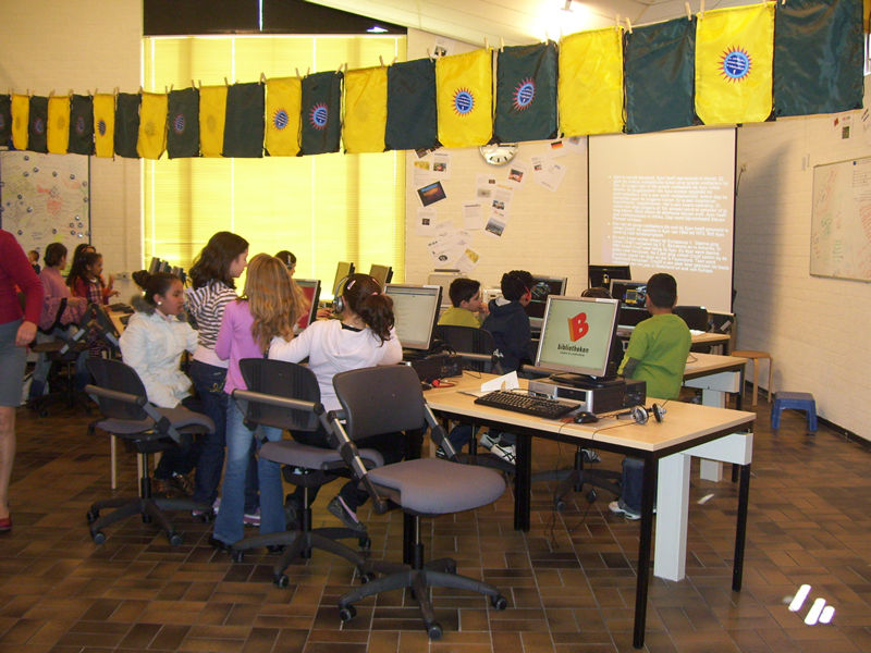Vanmiddag is 'Skoolzone' feestelijk geopend bij BplusC, locatie 't Spoortje in leiden-Noord. 'Skoolzone' is de nieuwste digitale werkplek in de bibliotheek, waar kinderen vanaf 8 jaar kunnen werken aan werkstukken, boekbesprekingen en spreekbeurten, zonodig onder begeleiding van de medewerkers van de bibliotheek. Directeur BplusC Peter Duijvestein sprak het welkomstwoord, waarna wethouder van cultuur, Jan Jaap de Haan uitgebreid toelichtte hoe belangrijk begeleiding op de zoektocht door het internet wel kan zijn. Zelf ooit op zoek naar de Griekse held Ajax, leverde de wethouder, behalve veel voetbal ook schoonmaakmiddelen op. De belangstelling was groot! Rapgroep 'Strijder Records' uit Leiderdorp bezong de noodzaak van opleiding en had veel succes, ondanks de wat haperende apparatuur. Meer info: www.BplusC.nl.