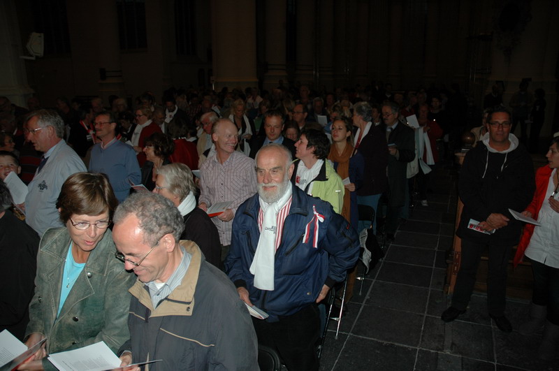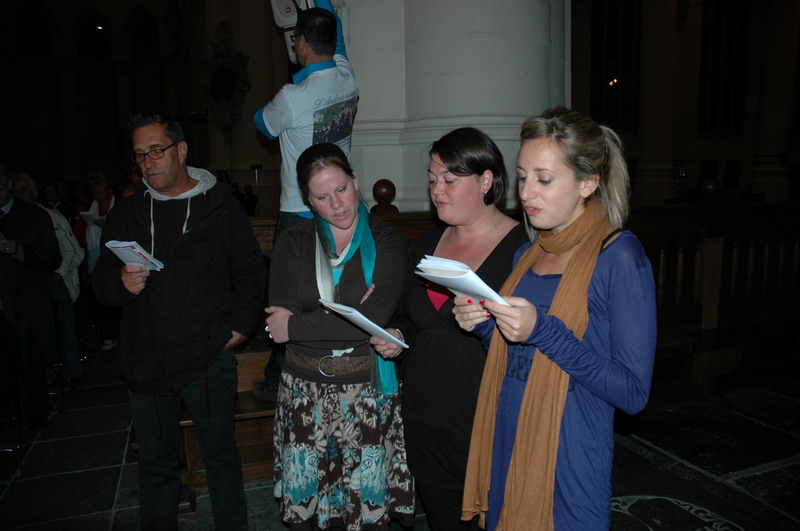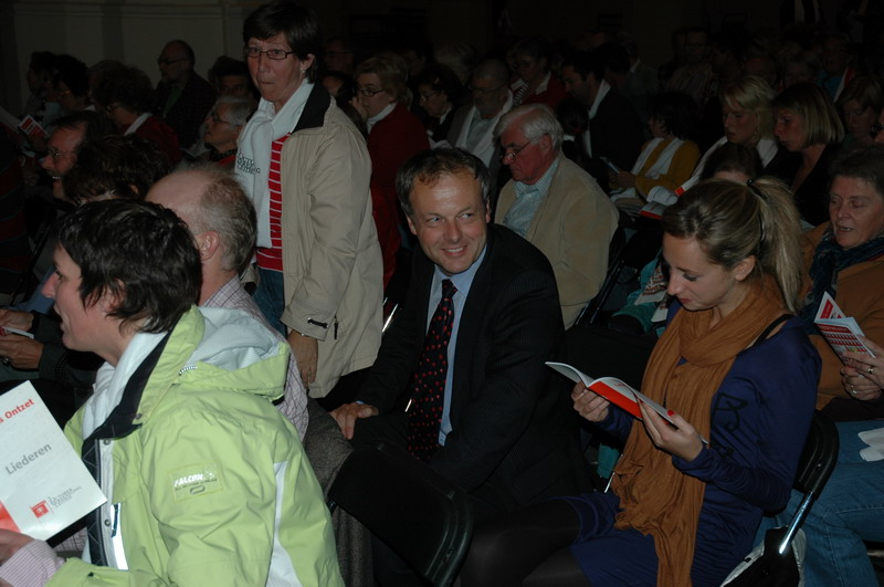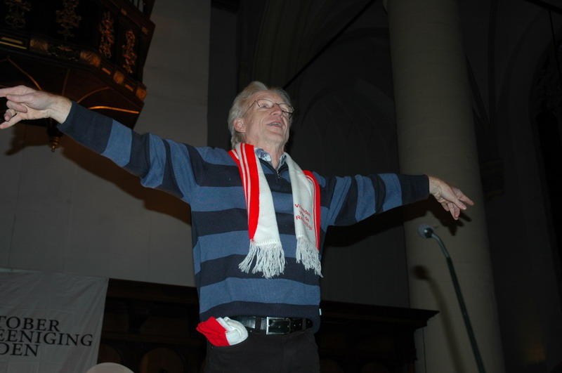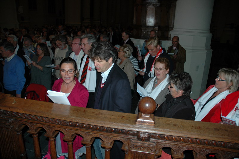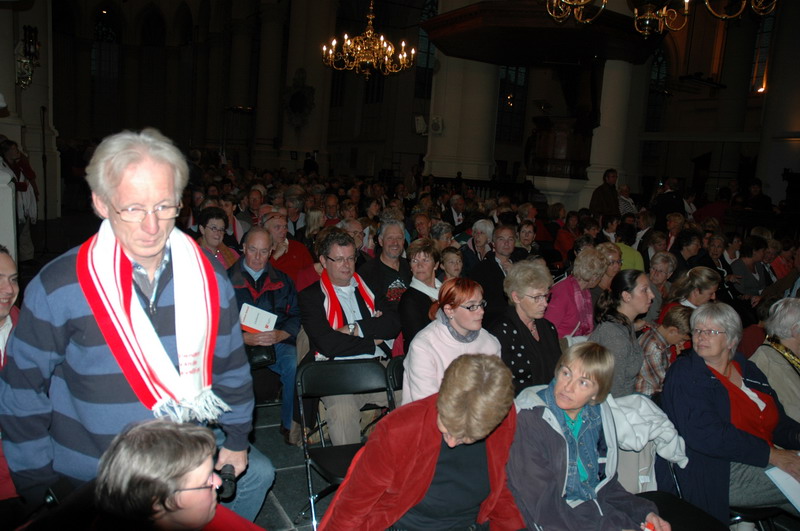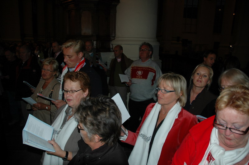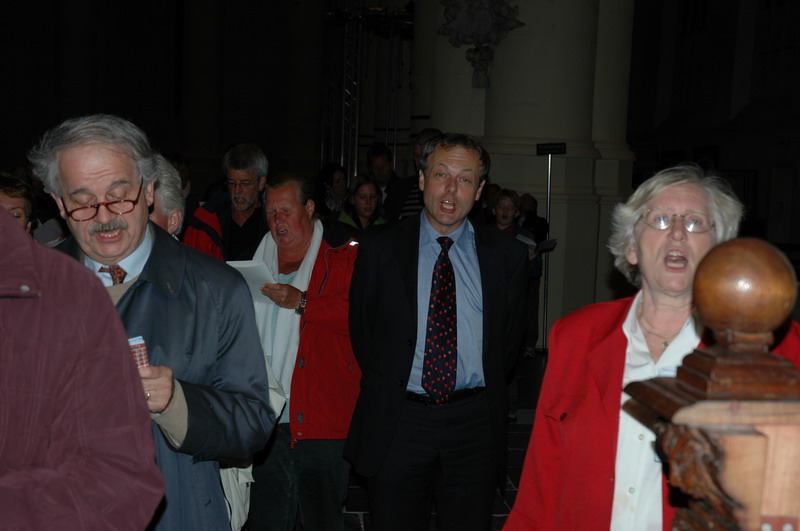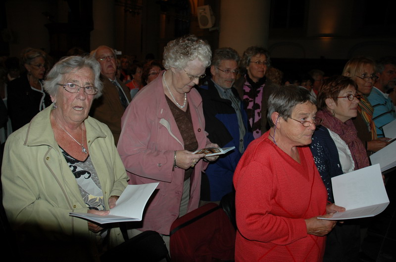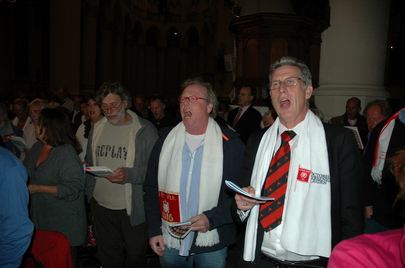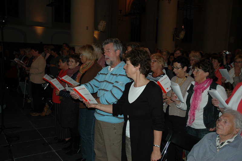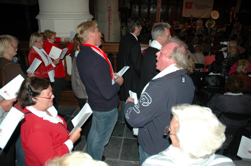 Ruim 500 mensen zongen afgelopen avond de keel schor tijdens het oefenen voor de Koraalzang die volgende week vrijdag om acht uur wordt gehouden in het Van der Werffpark. Het was weer een uurtje flink oefenen om vooral de vaak ingewikkelde melodielijnen erin te krijgen. Na de pauze werd het hele programma nogmaals gezongen. Dirigent Wim de Ru was opgetogen: "Het was weer een beter koor dan vorig jaar." De muzikale begeleiding werd verzorgd door Concordia en Werkmans Wilskracht. (Foto's: Chris de Waard).
