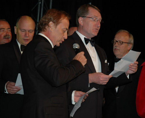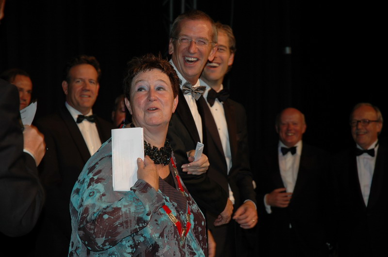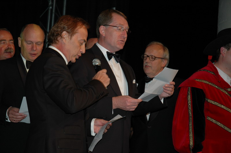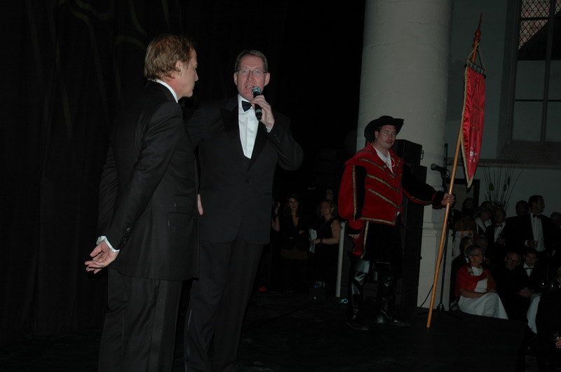 Afgelopen avond werd voor de 18e keer de Internationale Herdenking van Leidens Ontzet gevierd. In verband met de restauratie van de Pieterskerk week de organisatie dit jaar uit naar de Hooglandse Kerk. Dat beviel zo goed dat voorzitter Menno Smitsloo zelfs overweegt om volgend jaar weer in de Hooglandse Kerk neer te strijken. De sfeer werd door de bezoekers als 'intiemer' ervaren. Optredens van Anita Meijer en Jeroen van der Boom waren het klapstuk van de avond. Klapstuk stond overigens ook op het menu, met hutspot uiteraard. Op de foto opent Commissaris van de Koningin in Zuid-Holland, Jan Franssen, de avond met een toespraak, waarin hij een pleidooi hield voor het voortzetten van deze traditie met behulp van het bedrijfsleven en de overheid. Een nauwelijks verhulde oproep aan de gemeente Leiden om het gala voortaan weer te ondersteunen. Daarna werd het Leidse volkslied gezongen. (Foto's: Chris de Waard).