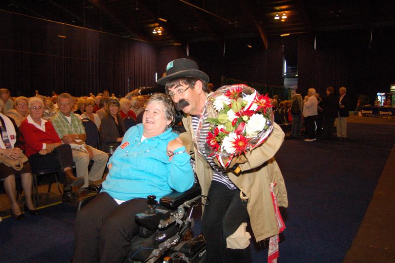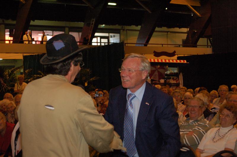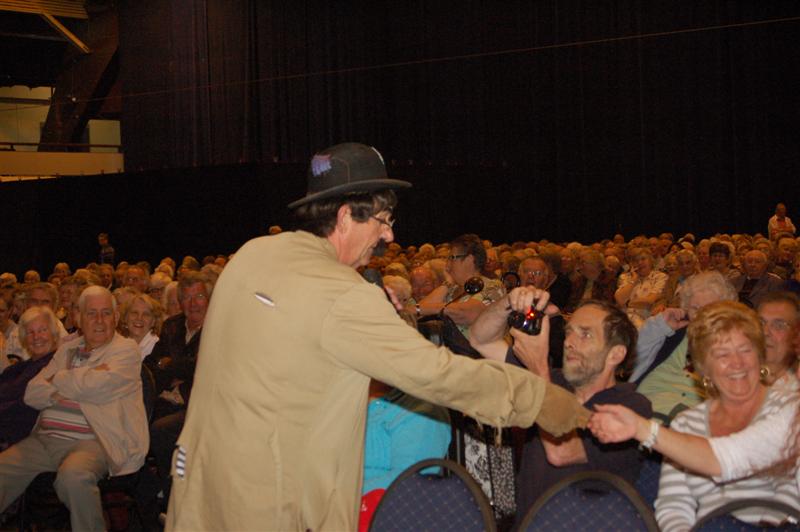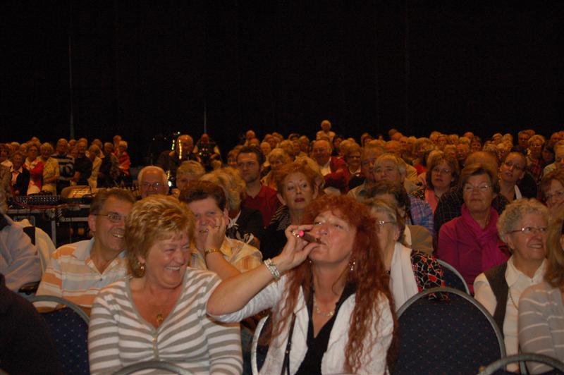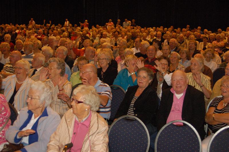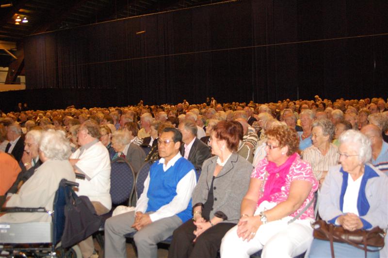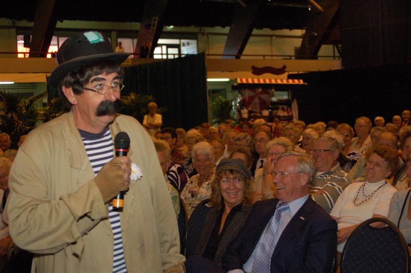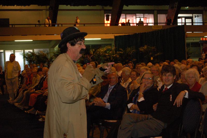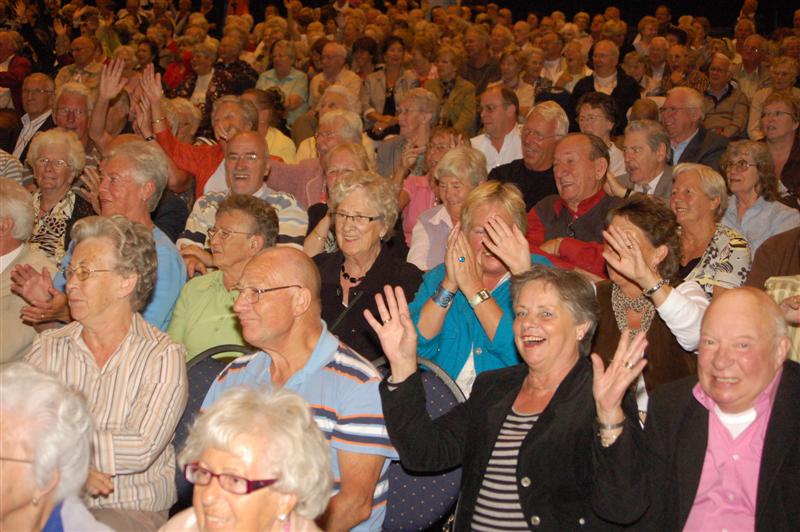 Het was gisteren een volle bak in de Groenoordhallen. Leidse senioren bezochten massaal de gratis voorstelling van Joke Bruijs en Gerard Cox die de 3 October Vereeniging hen aanbood. Naast Bruijs en Cox kwam ook een Dorus-imitator de middag luister bijzetten. Het Showorkest van Koos Mark zorgde voor de muzikale begeleiding.