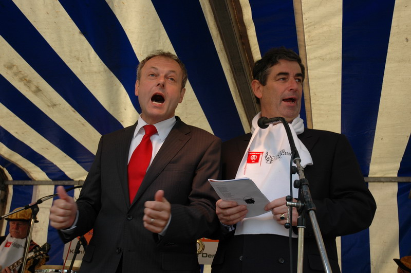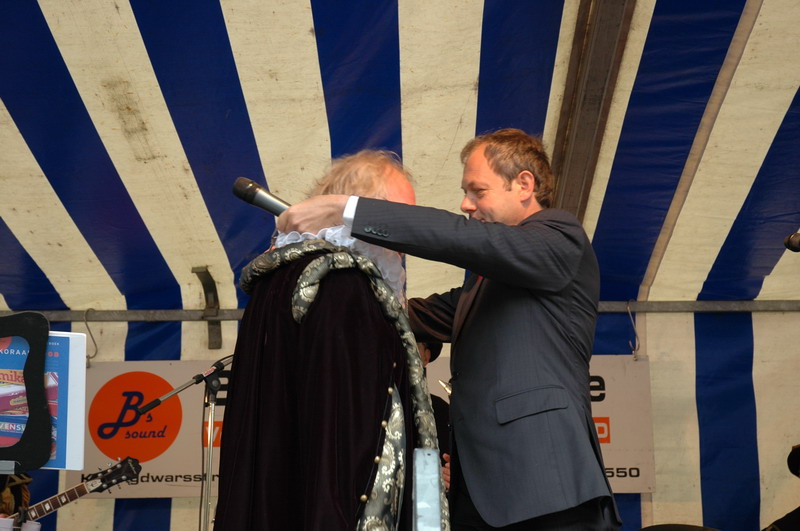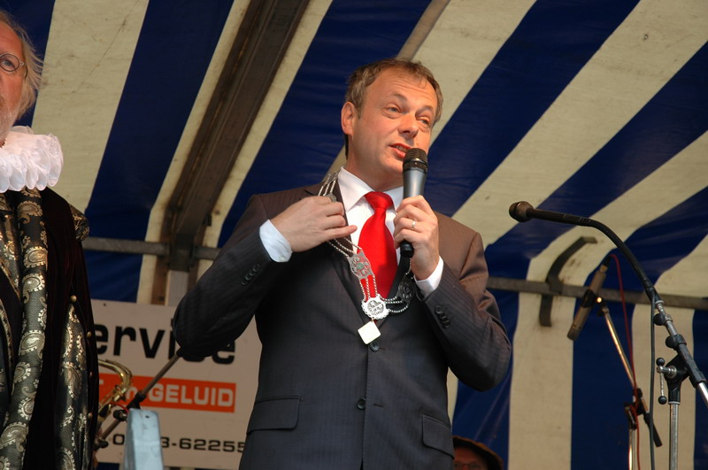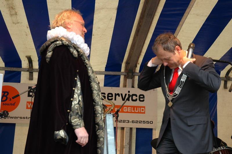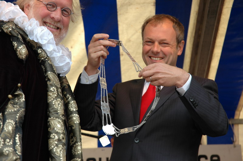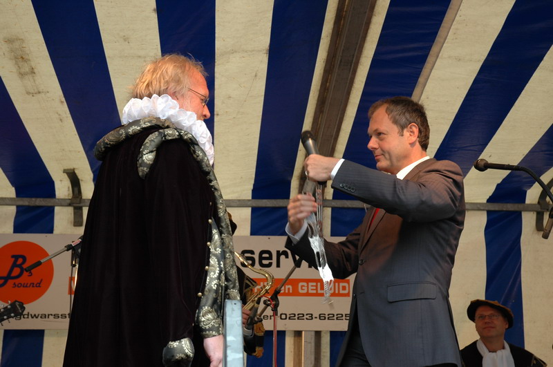 Burgemeester Lenferink stond zoals inmiddels traditie is geworden zijn ambtketen tijdelijk af aan zijn illustere voorganger Van der Werff die wel moest beloven er heel goed op te passen. “Ik ben er eentje kwijtgeraakt,” grapte burgemeester Lenferink toen hij de keten overhandigde. Op 3 oktober zal Lenferink voor het eerst zijn gloednieuwe ambtsketen dragen. Vandaag gebruikte hij de kopie van de vermiste keten.