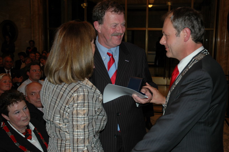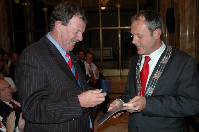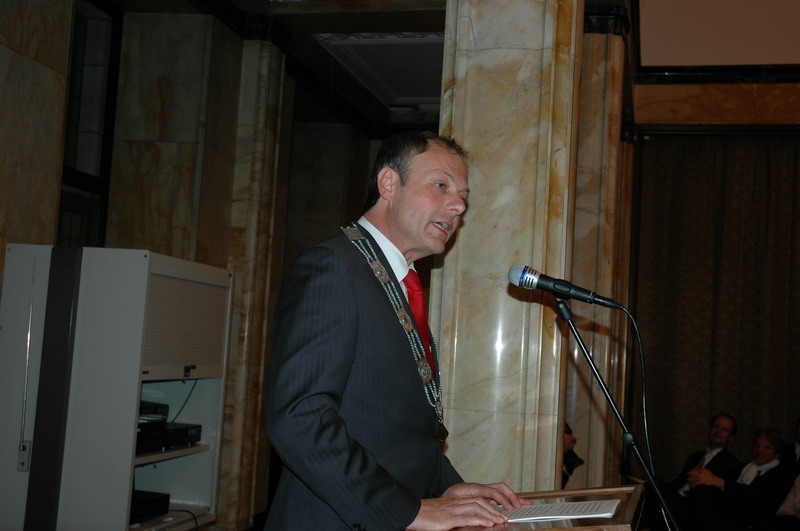 Een compleet verraste Kohlbeck nam de erepenning afgelopen avond in ontvangst. Dat Kohlbeck in het circuit zit waar dergelijke onderscheidingen vallen, bleek wel uit een anekdote die hij in zijn dankwoord vermeldde. "Ik was er van overtuigd te weten wie de penning zou krijgen en had daarom vandaag een enorm boeket bloemen gekocht om vanavond aan diegene te geven." (Foto's: Chris de Waard).