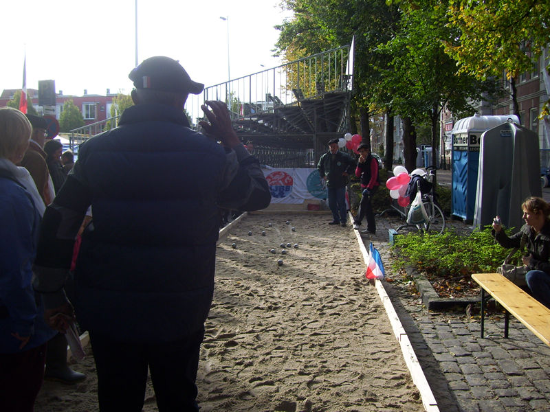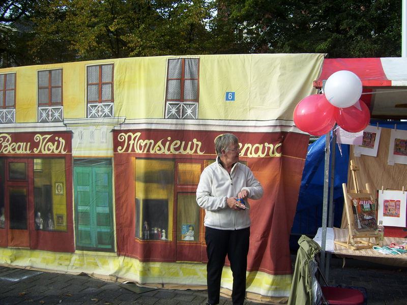De Garenmarkt is omgetoverd tot een echt 'Montmartre' kompleet met portrettekenaars, silhouetknippers, accordeonmuziek, een jeu de boules veldje, terrasjes en natuurlijk veel wijn en stokbrood. Met een ietwat schraal zonnetje tussen gigantische wolkenpartijen biedt het plein, gemarkeerd door de Eiffeltoren, een vrolijke Franse aanblik. Op het jeu de boules veldje zie je veel mensen, kompleet met alpinopetten, een spelletje wagen, waarbij het resultaat zeer serieus wordt uitgemeten. Op en rondom het plein zijn diverse activiteiten georganiseerd. Hopelijk blijft het nog even droog!