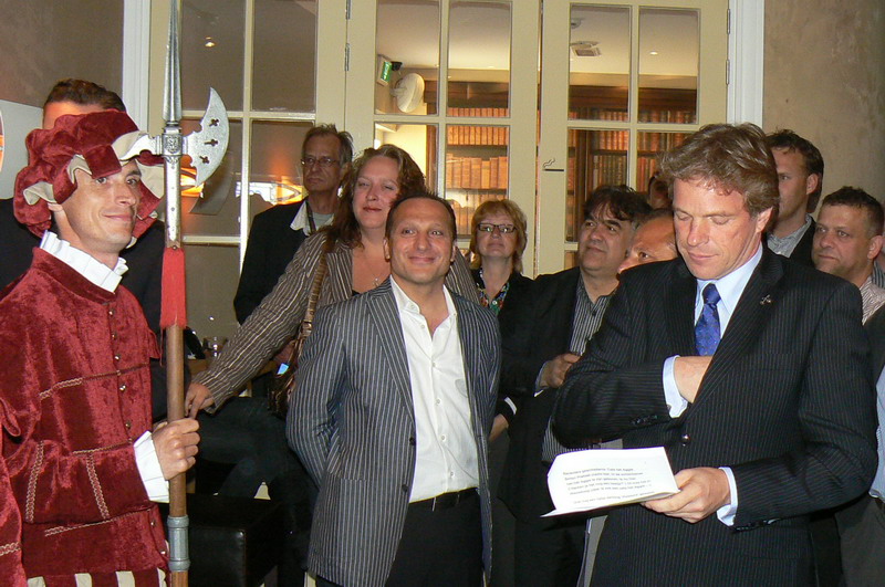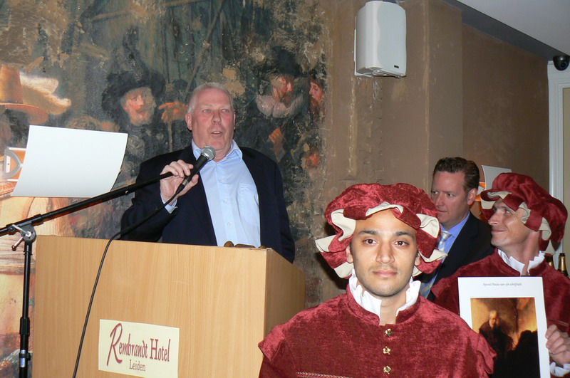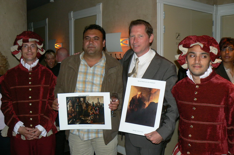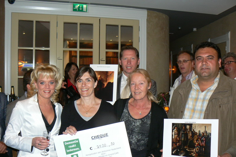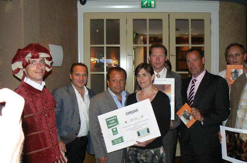 Om 20.00 uur besteeg veilingmeester Aad van der Luit het podium en zette hij een bijzonder komische, maar zeer doeltreffende veiling neer. Twee gigantische Rembrandtdoeken wisselden van eigenaren met een opbrengst van 2100 Euro. Mirna van Dongen -van de Stichting Alzheimer- Nederland, nam de cheque in ontvangst. De nieuwe eigenaren van de Rembrandtdoeken zijn: René van leeuwen van Berk Accountants en Sahin Gunes, eigenaar matrassenfabriek PBH BV.