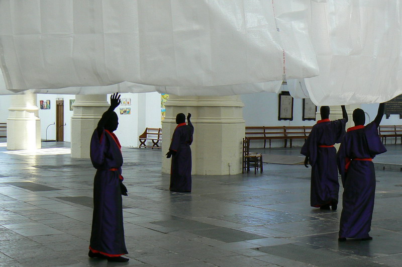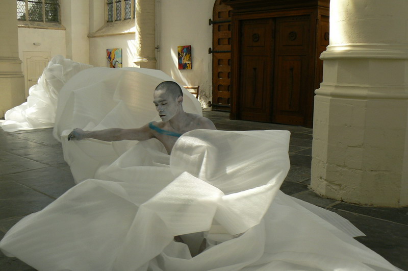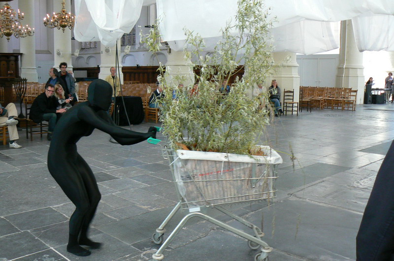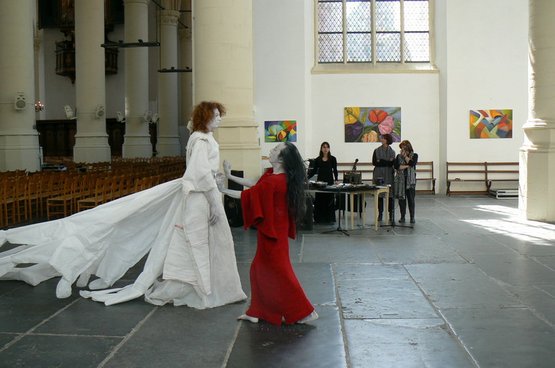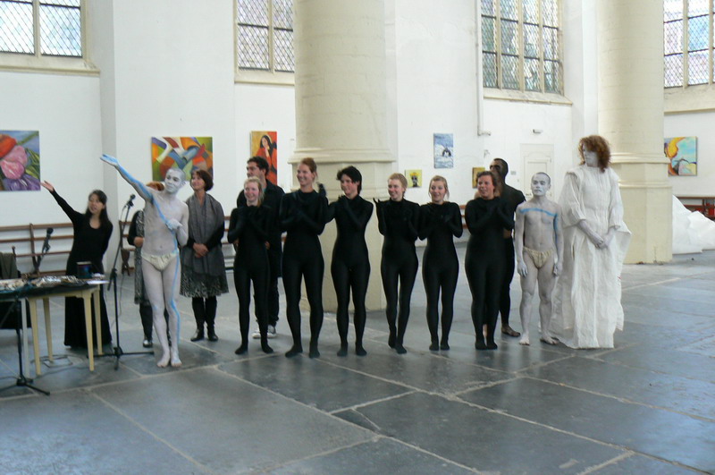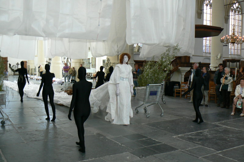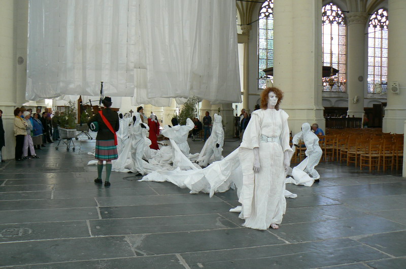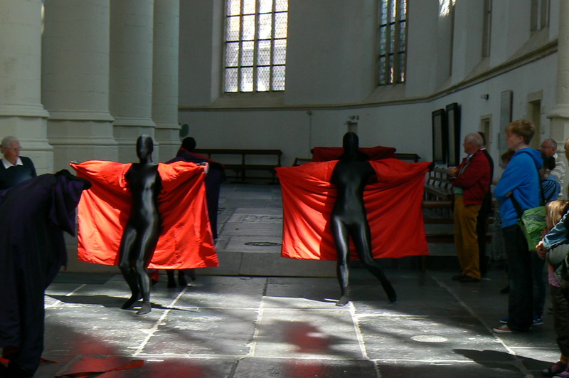 Wethouder John Steegh heeft vanmiddag om 15.00 uur de eerste voorstelling van 'Luchtruim' geopend. Zijn vliegend schip moest de lucht in, maar dat bleek nog niet zo gemakkelijk. De voorstellingen van 'Fields of Wonder', een gezelschap van beeldende kunstenaars, dansers en spelers, vinden plaats in het kader van de 'Leidse Luchtwerken' en worden gehouden in de Hooglandse Kerk. Dit indrukwekkende spektakel, waarin beelden, geuren, geluiden en interactie met het publiek tot een muisstille kerk leidde, wordt morgen om 15.00 en om 21.00 uur herhaald. Een echte aanrader om te gaan kijken! Meer info en speeldata: www.deleidseluchtwerken.nl en www.fieldsofwonder.nl.
