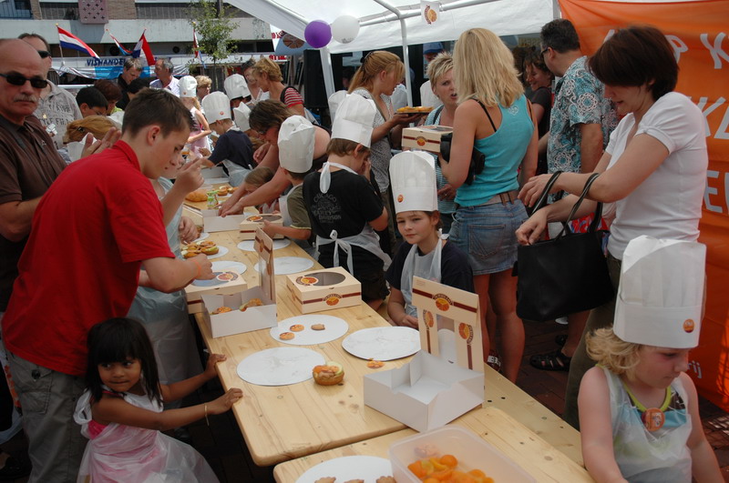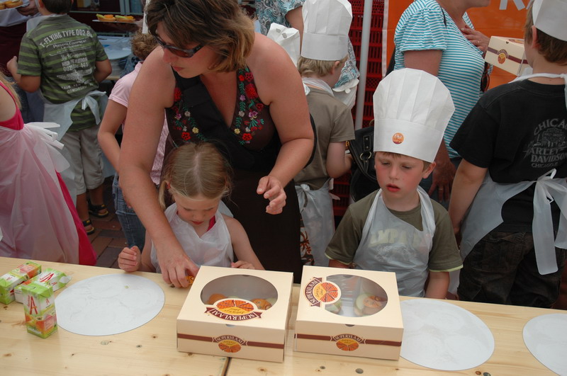 De kinderen leefden zich uit met het maken van de Kikavlaai. Vervolgens trokken ze de Luifelbaan over om ze aan de man/vrouw te brengen. (Foto's: Chris de Waard).