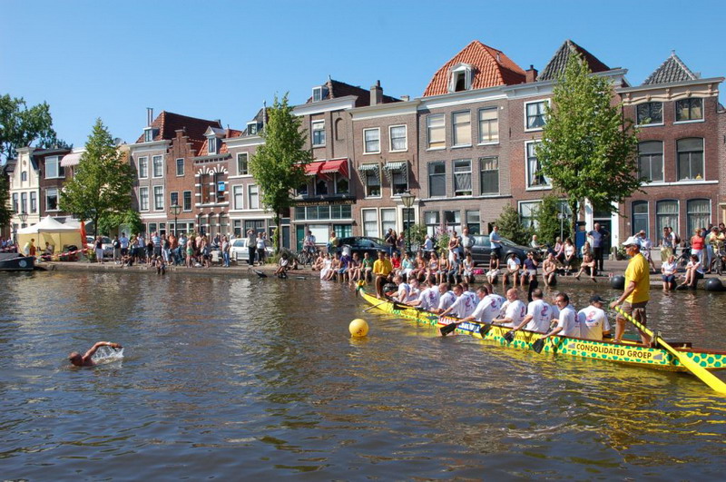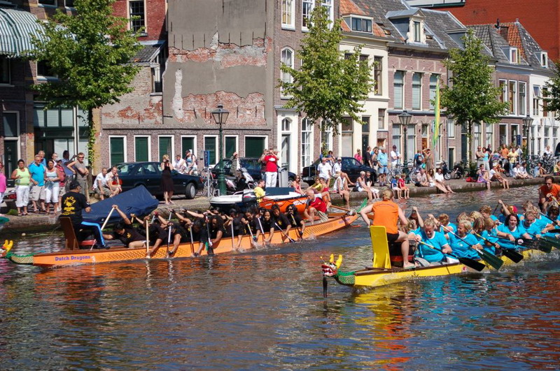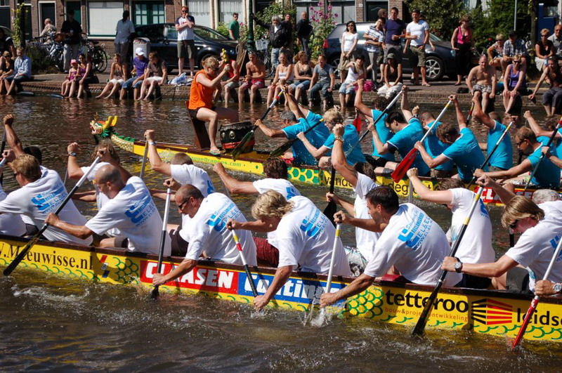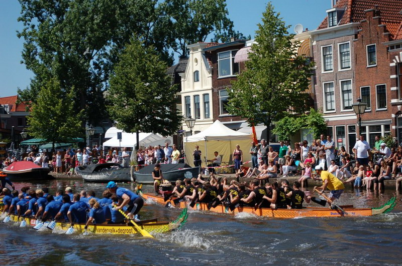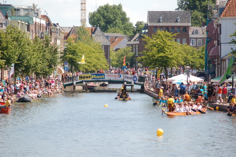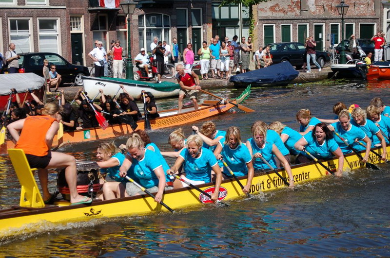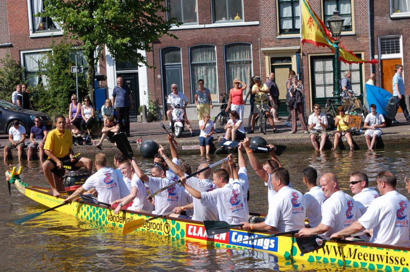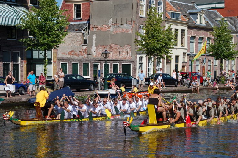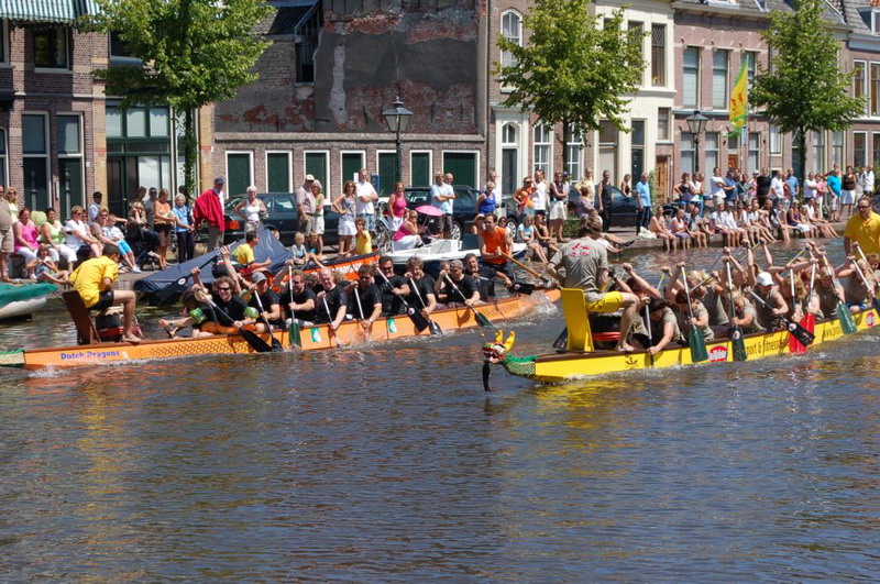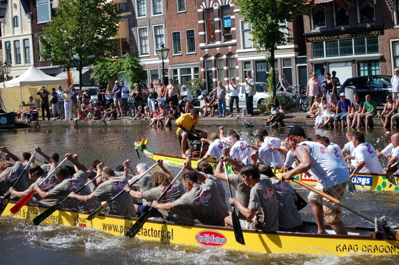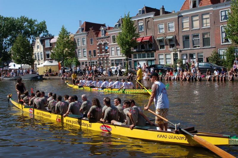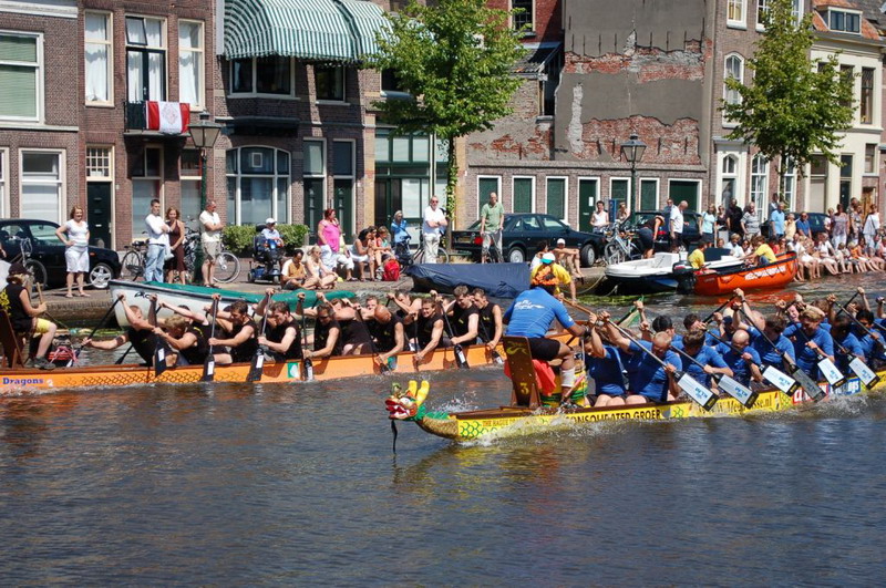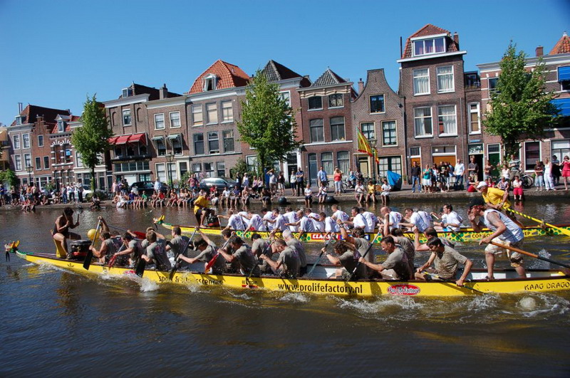 Vast onderdeel van de Lakenfeesten zijn de drakenbootraces. Gelegenheidsteams en wedstrijdroeiers namen de hele zaterdagmiddag weer bezit van het water tussen de Apothekersdijk en de Boommarkt. Vele duizenden toeschouwers genoten van het spektakel en het prachtige weer.