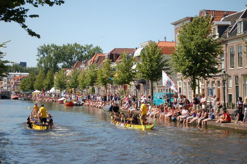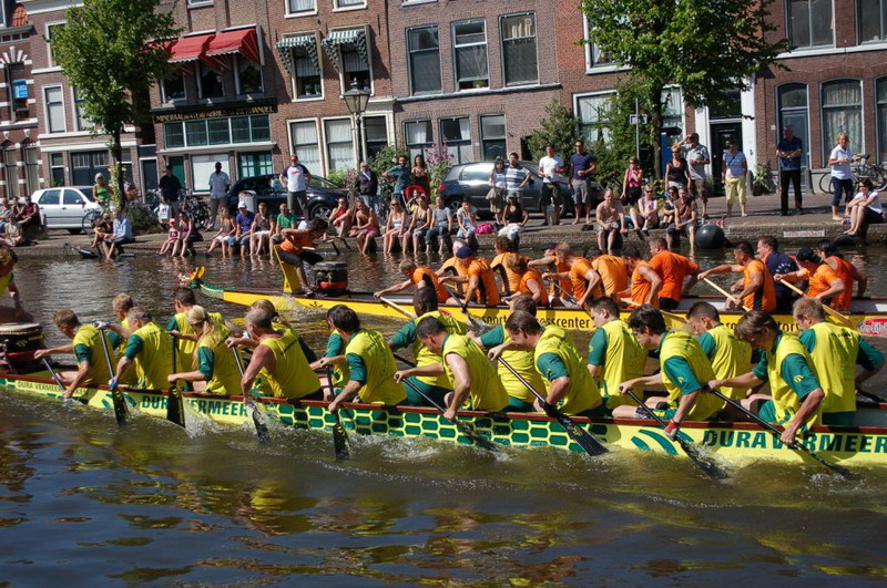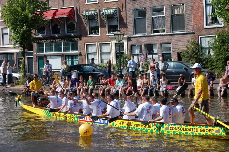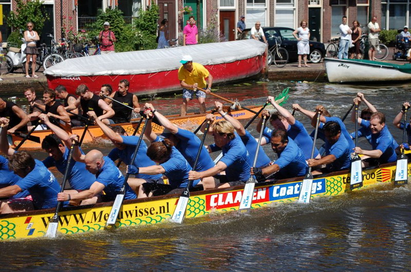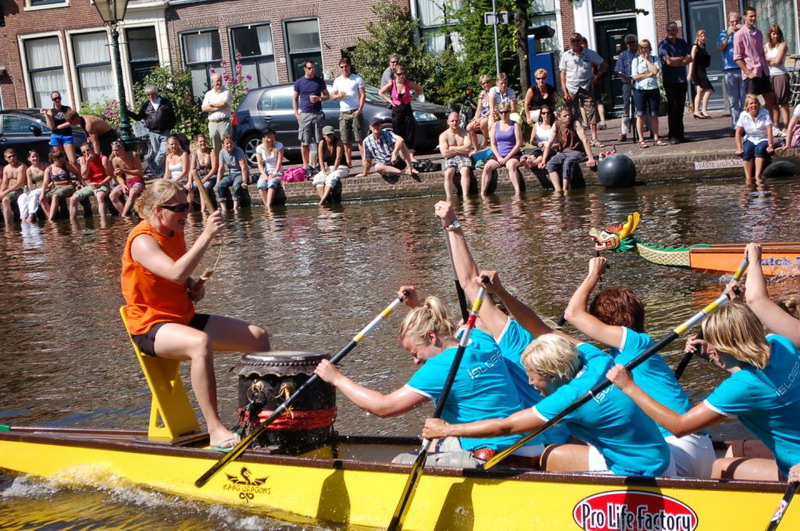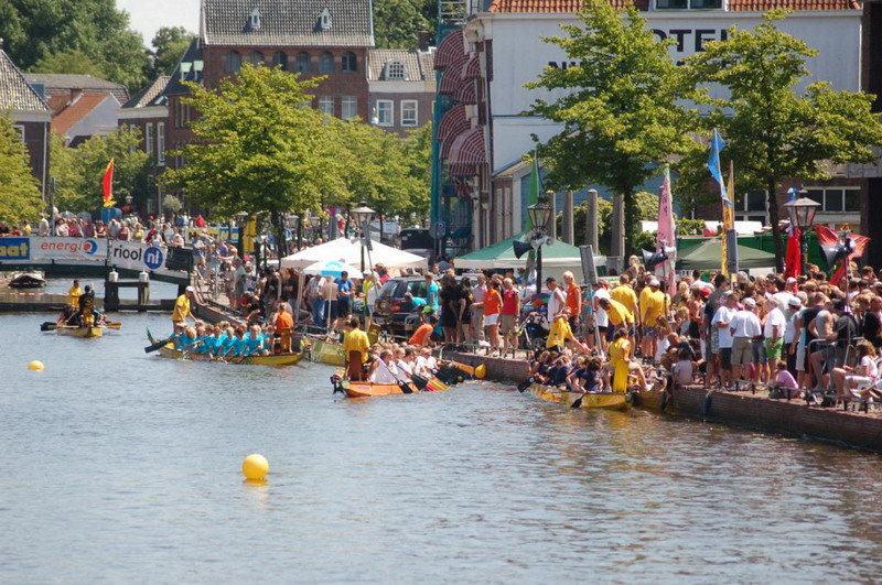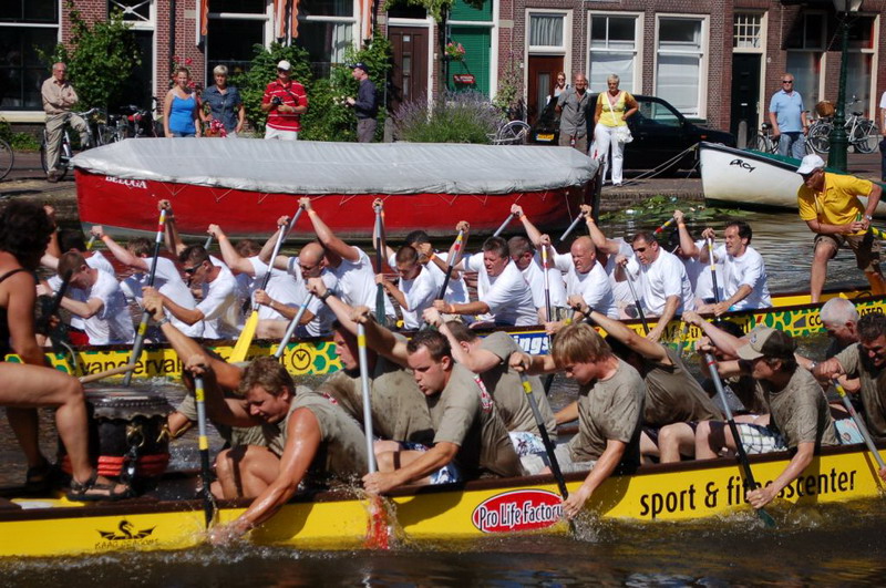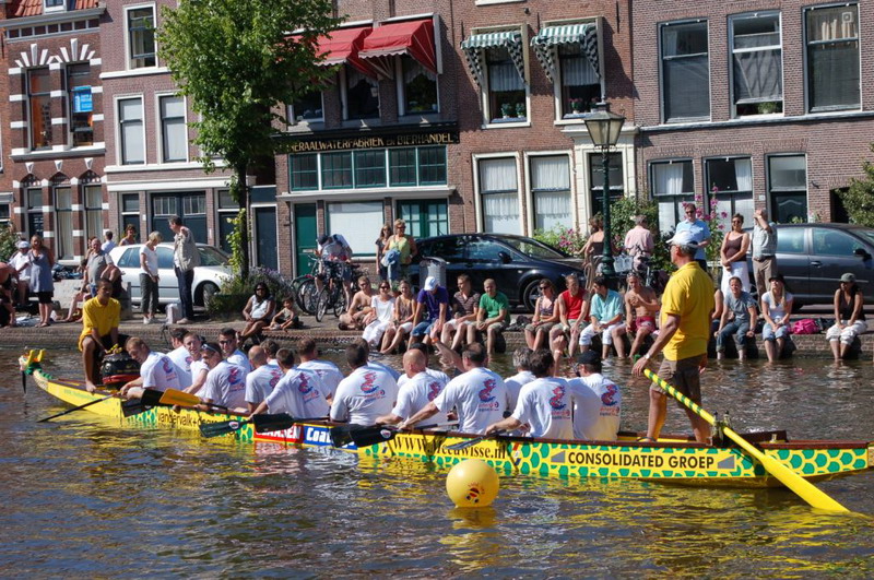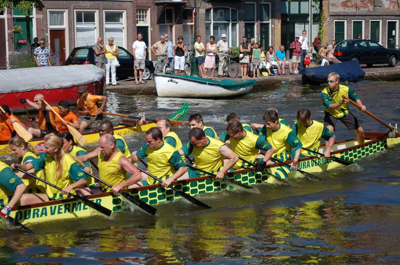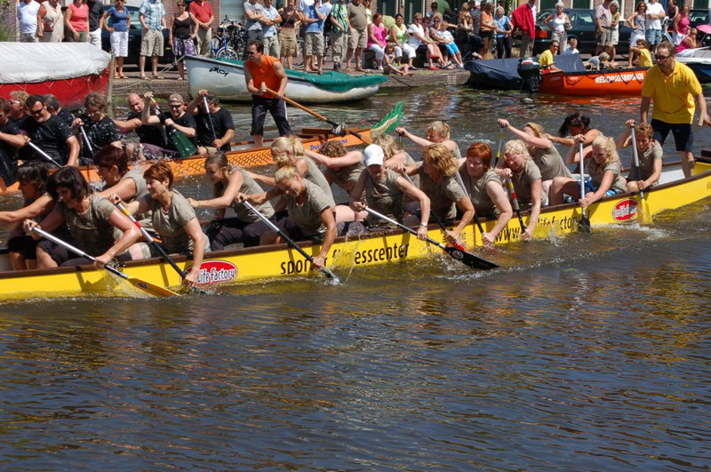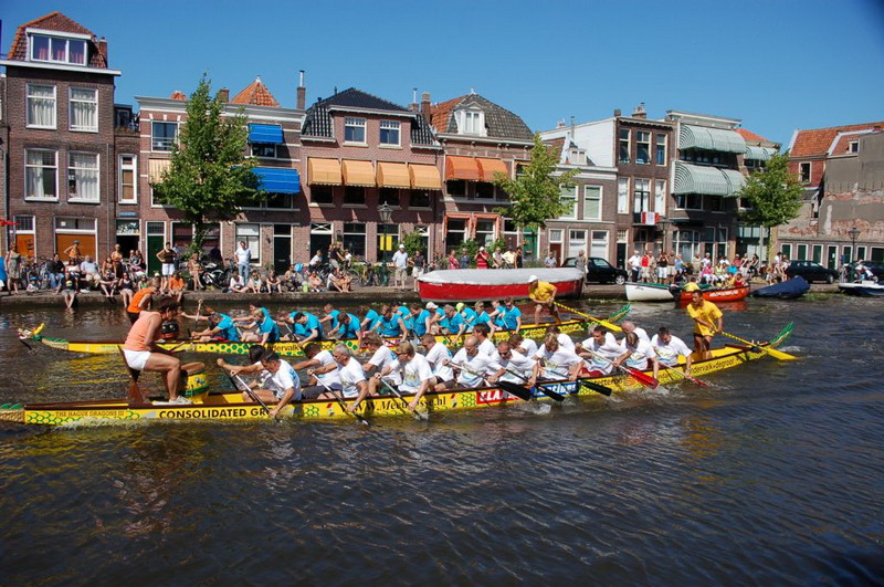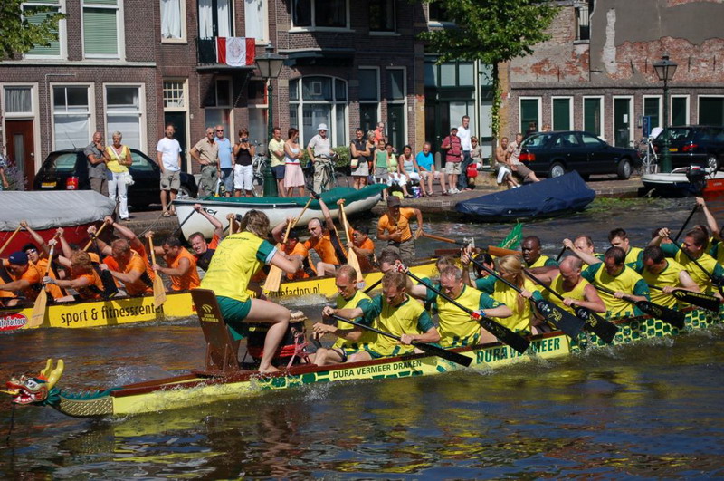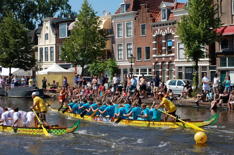 Vast onderdeel van de Lakenfeesten zijn de drakenbootraces. Gelegenheidsteams en wedstrijdroeiers namen de hele zaterdagmiddag weer bezit van het water tussen de Apothekersdijk en de Boommarkt. Vele duizenden toeschouwers genoten van het spektakel en het prachtige weer.