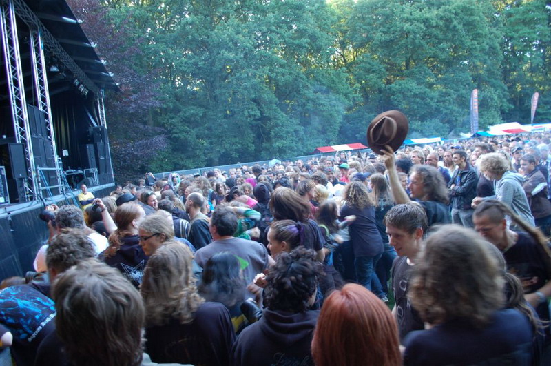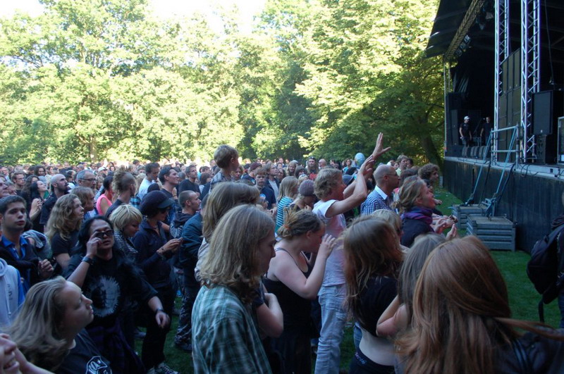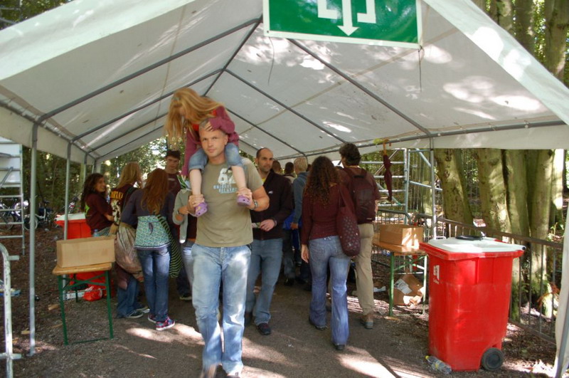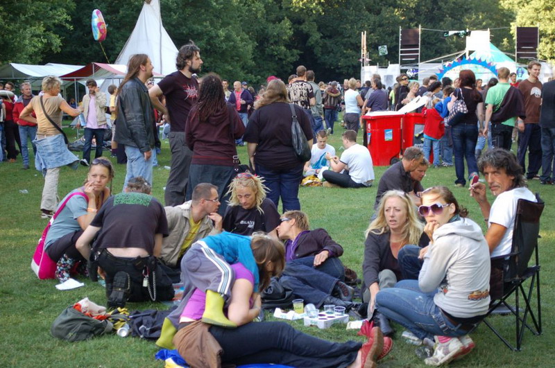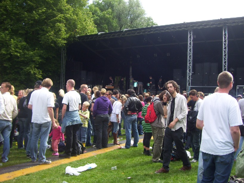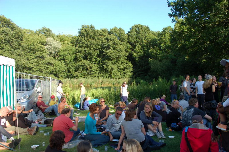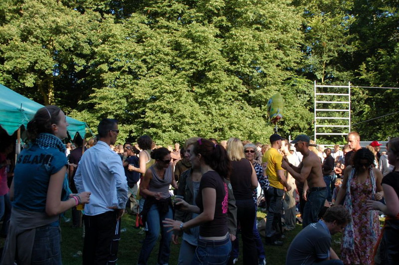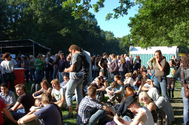 Gelukkig konden de plastik regenponcho's en geïmproviseerde exemplaren van vuilniszakken al snel uit, want de lucht klaarde op boven het 28e Leidse Werfpop Festival in de Leidse Hout. Het gratis festival is weer druk bezocht door oude, jonge en piepjonge muziekliefhebbers. Voor de kleintjes zijn er bovendien allemaal leuke activiteiten georganiseerd. Het festival werd geopend door de Leidse Droomdenkers, die eind mei de voorronde van Werfpop wonnen. Het programma, dat nog doorgaat tot vanavond 23.00 uur, brengt ijzersterke bands op twee hoofdpodia. Het DJ-collectief van de Cosmic Combination zorgt voor de muzikale invulling op het achterveld. Rondom het terrein staan allerlei tentjes opgesteld met hapjes, drankjes, kleding in hippie- of hardrock stijl, cd's en nog veel meer. De bewaking bij de hoofdingang controleert de festivalgangers o.a. op het meenemen van blikjes. Meer info en programma: www.werfpop.nl .