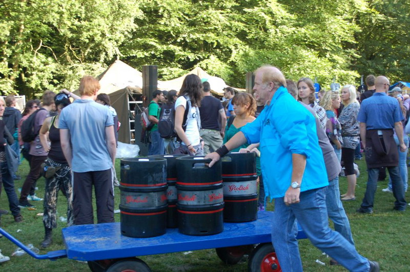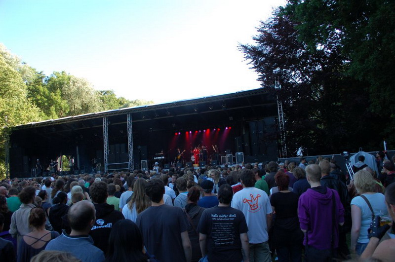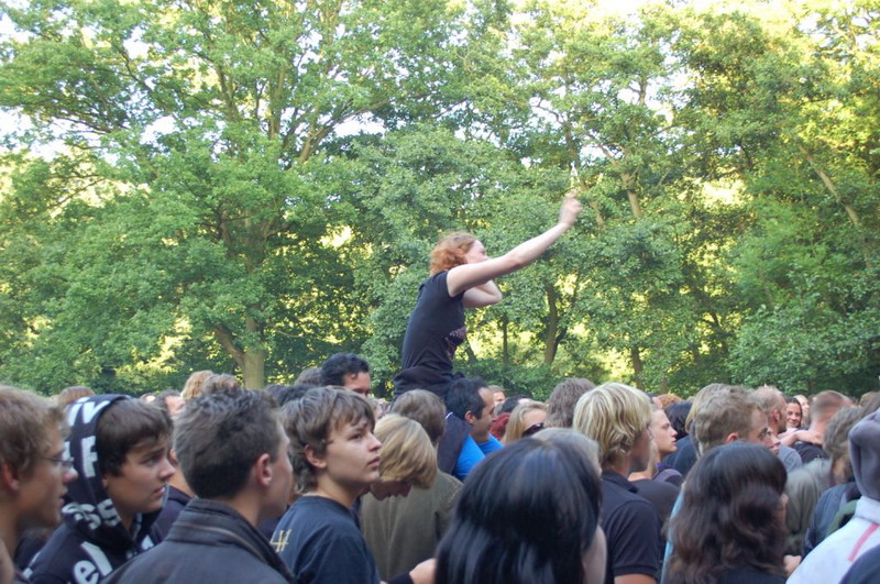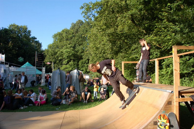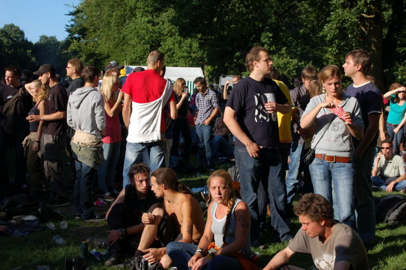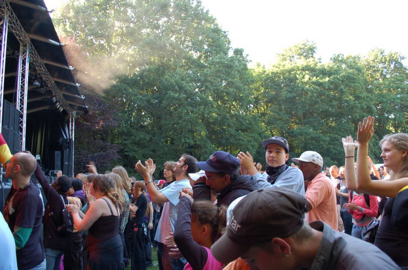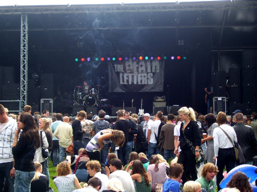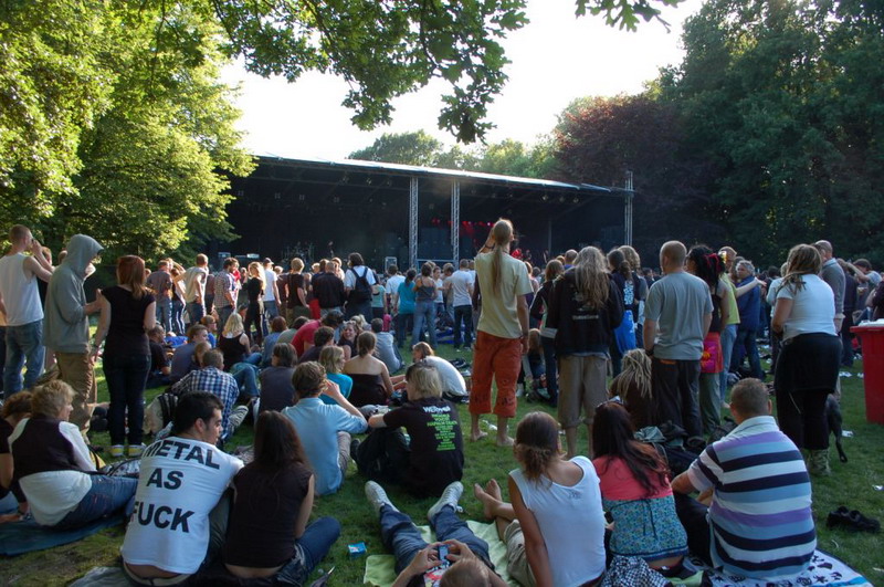 Gelukkig konden de plastik regenponcho's en geïmproviseerde exemplaren van vuilniszakken al snel uit, want de lucht klaarde op boven het 28e Leidse Werfpop Festival in de Leidse Hout. Het gratis festival is weer druk bezocht door oude, jonge en piepjonge muziekliefhebbers. Voor de kleintjes zijn er bovendien allemaal leuke activiteiten georganiseerd. Het festival werd geopend door de Leidse Droomdenkers, die eind mei de voorronde van Werfpop wonnen. Het programma, dat nog doorgaat tot vanavond 23.00 uur, brengt ijzersterke bands op twee hoofdpodia. Het DJ-collectief van de Cosmic Combination zorgt voor de muzikale invulling op het achterveld. Rondom het terrein staan allerlei tentjes opgesteld met hapjes, drankjes, kleding in hippie- of hardrock stijl, cd's en nog veel meer. De bewaking bij de hoofdingang controleert de festivalgangers o.a. op het meenemen van blikjes. Meer info en programma: www.werfpop.nl .