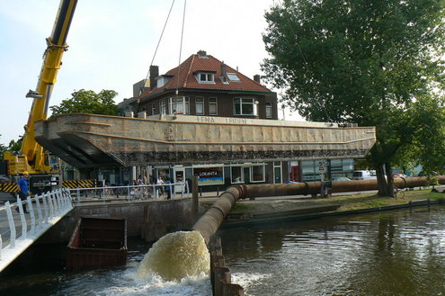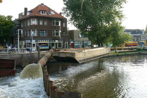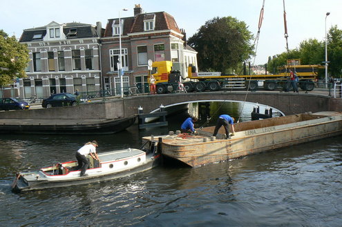 In verband met de werkzaamheden voor het afdammen van de Maresingel en het uitvooeren van de resterende bodemsanering, werden gisterenmorgen drie extra laadboten en een duwboot van het schone naar het vervuilde water getakeld.