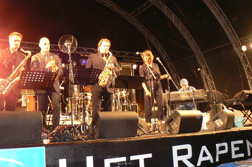 Jazz Invaders en verregend publiek, foto's: Marjo Heemskerk.
