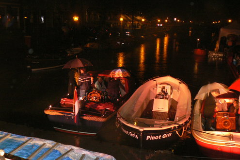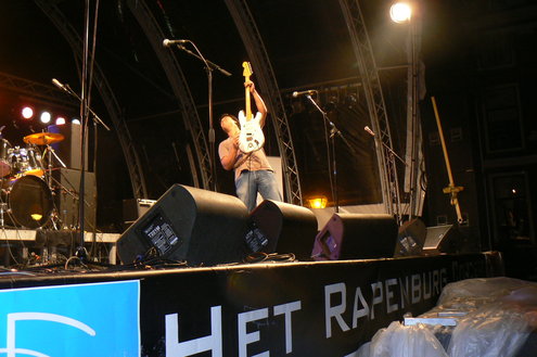Vanwege het hondenweer was er gisteravond weinig publiek op de been bij de eerste avond van het Rapenburg Festival. Door de harde wind dreven de buien af en aan. Rond 22.00 uur barstte het helemaal los en het publiek dook snel onder, terwijl de bootjes vol water stroomden. De musici wachtten in de kleedkamer tot de heftige bliksemschichten voorbij waren getrokken. Een aantal fanatiekelingen hield stug vol en genoot, zij het wat later, van Incognito op het hoofdpodium. Info en programma: www.rapenburgconcert.nl .