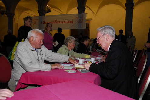 Tijdens de inschrijving was de Commissie Ledenwerving van de 3 October Vereeniging ook druk bezig met het winnen van zieltjes. De vereniging wil graag doorgroeien naar 25.000 leden. Gisteren kwamen er alvast 155 bij. Ook morgen worden er leden geworven. Dan verzamelen de commissarissen van de PR commissie én 45 leerlingen van het Wellantcollege uit Oegstgeest zich om 16.00 uur aan de voor- en achterkant van het Centraal Station om de reizigers bewust te maken van de 3 October Vereeniging.