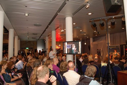 Vreugde bij de teamleden nadat minister Ronald Plasterk de Academische Jaarprijs 2009 heeft overhandigd aan Team De Jong van de Radboud Universiteit Nijmegen. Foto: Peter Schipper, reportage Emile van Aelst.