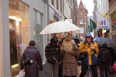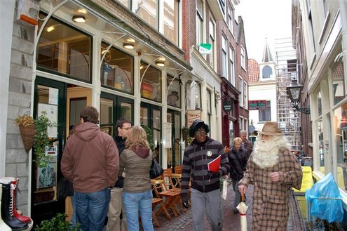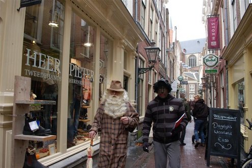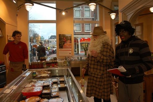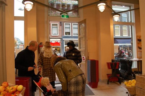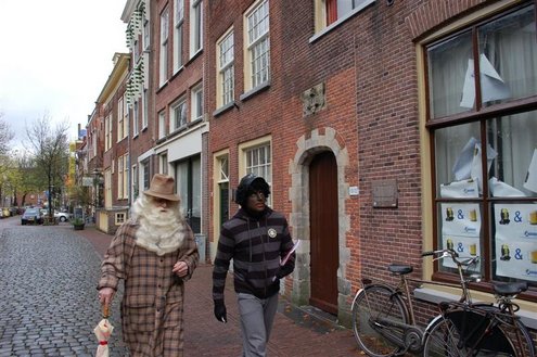 Vanmorgen in de vroege uurtjes, landde een bijzondere gast met een helikopter in de Sleutelstad. De heli pikte de oude man op van zijn boot op de Noordzee en zette hem en zijn assistent onopvallend neer in het Leidse stadscentrum. Ondanks de gewone kleding van beide heren, werd al snel duidelijk wie daar nu eigenlijk incognito door de winkelstraten liepen. Sinterklaas en zijn Kasboekpiet waren op werkbezoek om prijzen te vergelijken en de laatste inkopen te doen en Sleutelstad mocht mee! De Sint en Kaspiet stapten diverse winkels binnen, waarbij er soms erg verbaasd gereageerd werd. Op de markt werd de kwaliteit van mandarijnen gekeurd en bij een traiteur op de Breestraat werd de levering van proviand voor het schip van de Sint geregeld. Bij City Hall dronk de Sint, tevreden over het werkbezoek, nog even een kopje koffie en verheugt zich op zijn officiële aankomst in Leiden op 21 november.