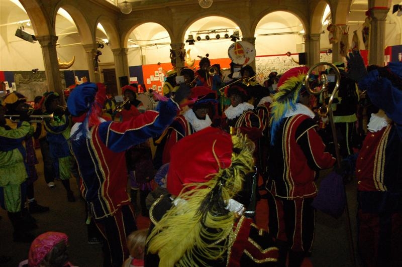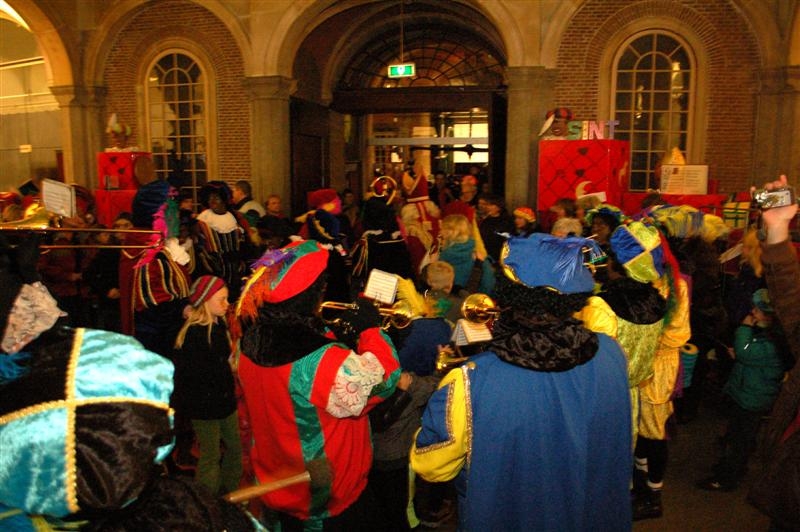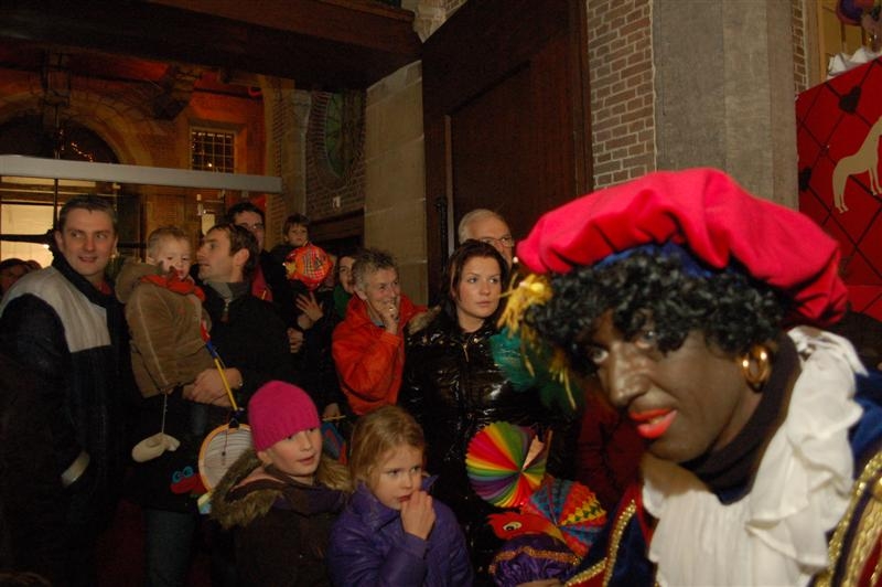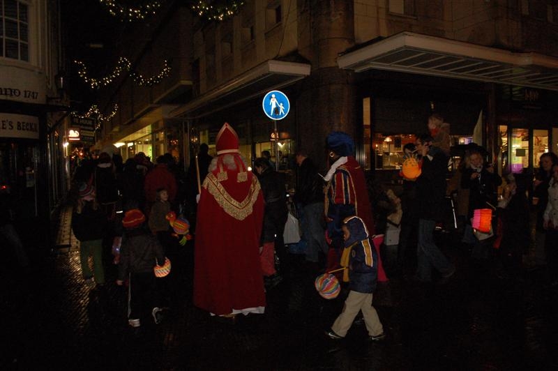 Het had een vrolijke en kleurige optocht moeten worden, maar het weer gooide roet in het eten. In de stromende regen liepen gisteravond zo’n 60 kinderen mee met de lampionnenoptocht, voorafgegaan door de Marepieten en natuurlijk Sinterklaas. De tocht ging vanaf de Waag, het logeeradres van de Sint, naar de fonkelnieuwe ijsbaan, waar iedereen doornat aankwam. Gelukkig kon er wat gescholen worden onder de Koornbeurs. Het bood een beetje trieste aanblik, maar veel kinderen lieten zich door de regen niet uit het veld slaan.