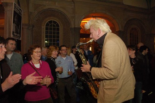 Gisteravond bracht Wouter Kiers een fantastische tribute ten gehore, opgedragen aan Boots Randolph. Deze voor velen een onbekende muzikant/componist overleed in 2007, maar liet vele bekende tunes na, zoals bijvoorbeeld de herkenningstune van de Benny Hill shows, bijna alle nummers van Elvis Presley, waarin een saxofoon te horen is. Het optreden van Kiers werd gevolgd door Liquid Spirits met Lo van Gorp, een bijzondere formatie, omdat de elf bandleden bijna altijd gescheiden in verschillende bands spelen en zelden tegelijkertijd optreden. De Leidse Waag schudde op haar grondvesten van de swingende muziek en het enthousiaste publiek.