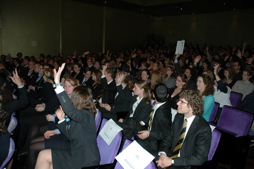 Een goed en vaak inhoudelijk verkiezingsdebat werd dinsdagavond georganiseerd voor Leidse studenten. Hoewel de paden redelijk platgetreden waren, zo werd er gediscussieerd over vrije sluitingstijden, de RijnGouweLijn en de band tussen de universiteit en de stad, kwam er toch nog een verrassing uit de hoed van de studenten die massaal op kwamen dagen. De afstudeerborrels op de verenigingen blijken onder druk te staan. Omdat er op zo’n borrel ook niet-studenten komen, zijn ze eigenlijk niet toegestaan. Verenigingen mogen geen buitenstaanders toelaten, dat levert valse concurrentie op voor de Leidse horeca. Maar dat ook afstudeerborrels daar onder vallen ging ook de Leidse politici te ver. “Dat moet gewoon kunnen op je eigen vereniging.” Het punt wordt meegenomen in het overleg dat de gemeente periodiek met de horecaondernemers heeft.