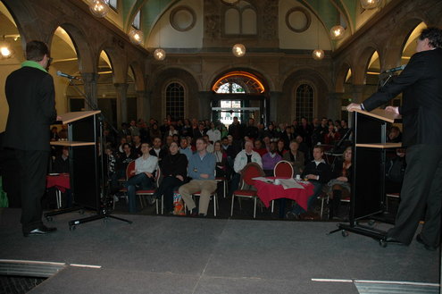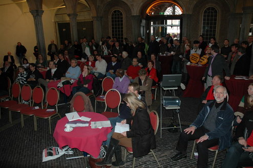 De komende periode moet Leiden rekening houden met bezuinigingen die kunnen oplopen van 15 tot wel 30 miljoen euro per jaar. Dat betekent dat de Leidse gemeentepolitiek opnieuw voor een stevige discussie staat op welke zaken bezuinigd kan worden of welke zaken de gemeente helemaal niet meer voor haar rekening kan of wil nemen. In het lijsttrekkersdebat dat het Leidsch Dagblad vanmiddag samen met de gemeente in De Waag organiseerde, mochten alle lijsttrekkers reageren op de ‘zaalvraag’ hoe die bezuinigingen gerealiseerd moeten worden. CDA-lijsttrekker De Haan denkt dat geen enkel beleidsterrein ontkomt aan bezuinigingen, maar de kaasschaaf-methode zal volgens hem niet voldoende zijn. “Dat scheelt misschien 5% en dat is niet genoeg, we moeten keuzes maken.” Welke liet hij nog in het midden. VVD-lijsttrekker Laudy wil als het niet anders kan het poppodium in de Nobel schrappen. Ook de 43 miljoen die Leiden jaarlijks uitgeeft aan welzijnssubsidies kunnen volgens hem wel een tandje minder.