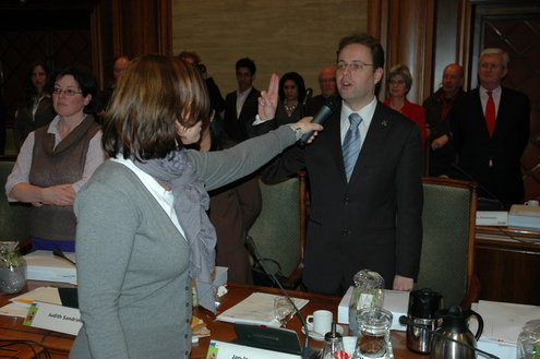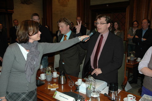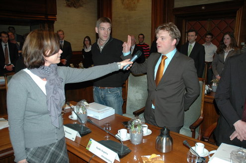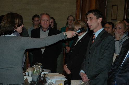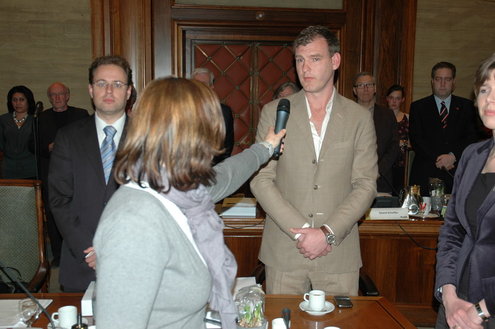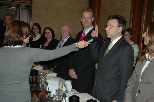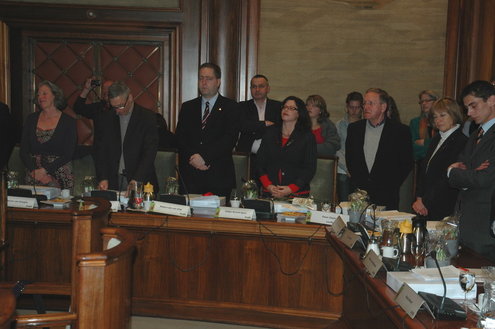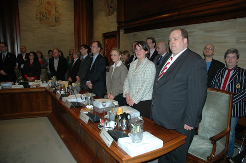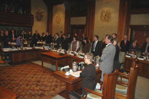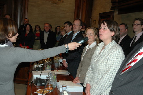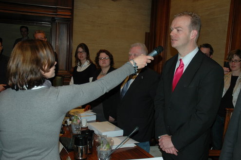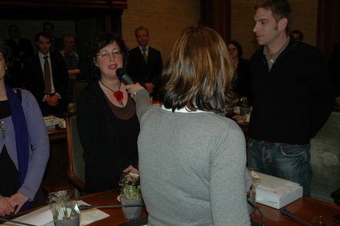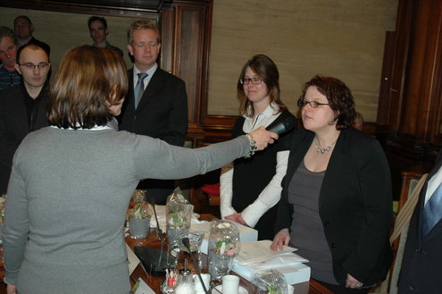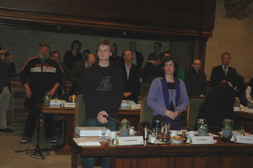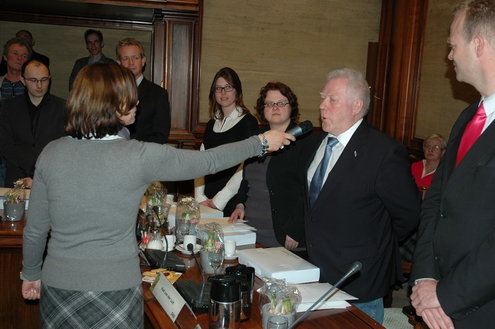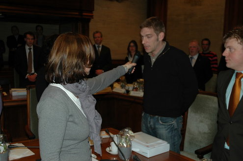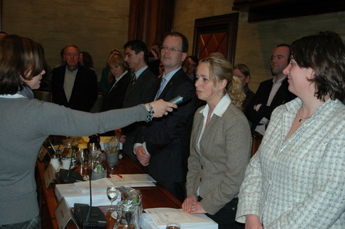 Afgelopen avond is de nieuwe Leidse gemeenteraad geïnstalleerd. 39 Nieuwe en terugkerende raadsleden legden één voor één de eed of de belofte af. Achter de collegetafel van het rustig vanavond. Wethouder Marc Witteman is de enige overgebleven wethouder die niet ook in de raad is gekozen. Wel is hij opnieuw in de race voor het wethouderschap van zijn partij. Vorige week verstuurde hij zijn sollicitatiebrief aan de fractie die uiteindelijk kiest wie er namens de PvdA naar voren wordt geschoven. Overigens is ook wethouder/fractievoorzitter Gerda van den Berg kandidaat-wethouder voor die partij. Op de website van de gemeente Leiden staat een overzicht van de nieuwe gemeenteraad.