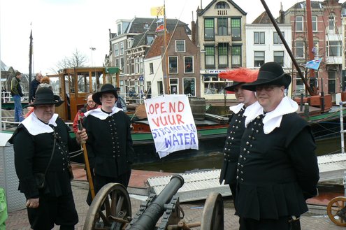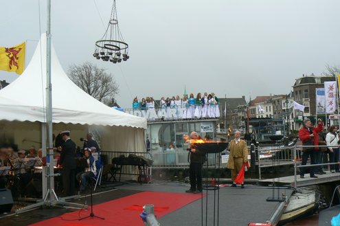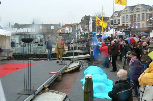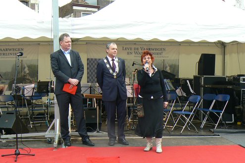 Vandaag, om 12.00 uur, hebben burgemeester Lenferink en gedeputeerde Martin van Engelshoven-Huls, het startschot gegeven voor de spectaculaire opening van 'Leve de Vaarwegen en Waterlinies' in het kader van het provinciaal themajaar. Hoogtepunt van de opening was het spektakel 'Lopend vuur, stromend water', een visueel bombardement, uitgevoerd door jongleurs, steltlopers, vuurspuwers, acrobaten en een bijzondere zangeres. Daarnaast waren er diverse optredens van onder andere Zangeres Zosja el Rhazi (bekend van Idols), dichteres Pink Meltzer, Merle en Carlijn (Junior Songfestival), het smartlappenkoor 'Er welt een traan' en Fields of Wonder. De belangstelling was groot en ook voor de kinderen was er veel te beleven. Het weer werkte niet helemaal mee en na de vrij heldere start begon het helaas flink te regenen; het mocht de pret niet drukken!