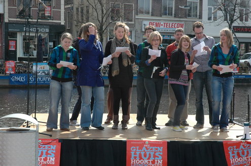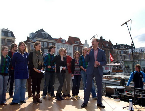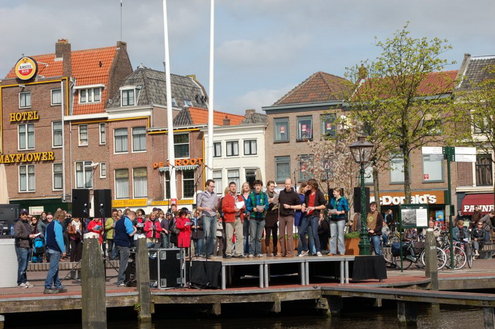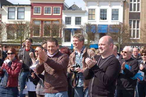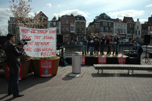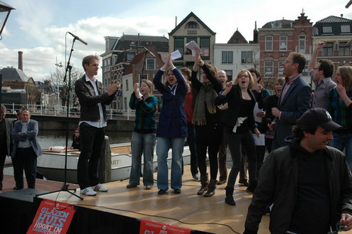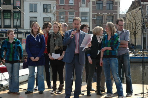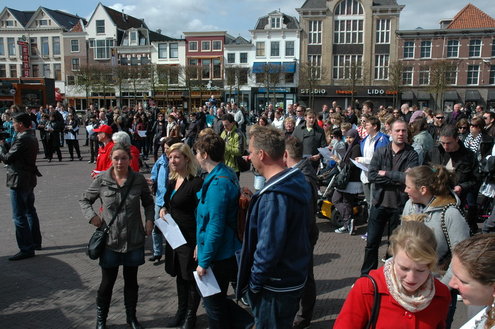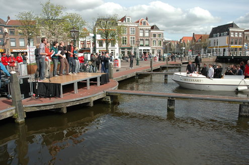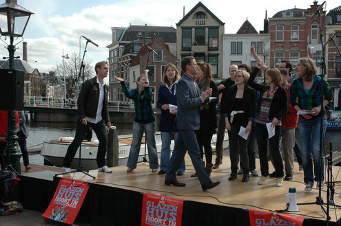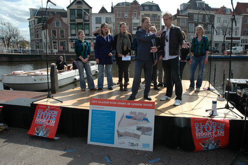 Honderden Leidenaren waren vanmorgen naar de Beestenmarkt gekomen om de delegatie van 3FM te laten zien dat het Glazen Huis dit jaar beslist naar Leiden moet komen. Leiden heeft alles mee, zo maakte wethouder Jan-Jaap de Haan de organisatie duidelijk. Lekker centraal in de Randstad. vlakbij alle grote steden en bovendien een Glazen Huis op het water van de Rijn. De Haan: “Bovendien is lobby om het Glazen Huis naar Leiden te halen niet door de gemeente bedacht, maar door de mensen van het jubilerende Rode Kruis in Leiden.” De van oorsprong Leidse dj Armin van Buuren komt bovendien een optreden verzorgen als het Glazen Huis in december inderdaad in Leiden komt te staan: “Eigenlijk heb ik dan een optreden in het buitenland, maar dat zeg ik dan af.”