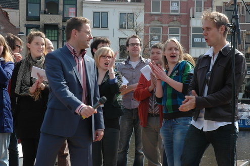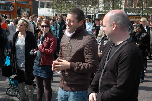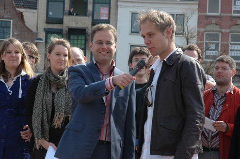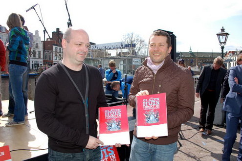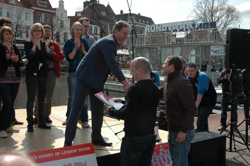 Met ambassadeurs Jochem Myjer en Armin van Buuren kan 3FM eigenlijk al niet meer om Leiden heen. Eind mei valt de beslissing. Een maandje later dan eerder gepland. (Foto's: Chris de Waard & Emile van Aelst / www.leidseglibber.nl).